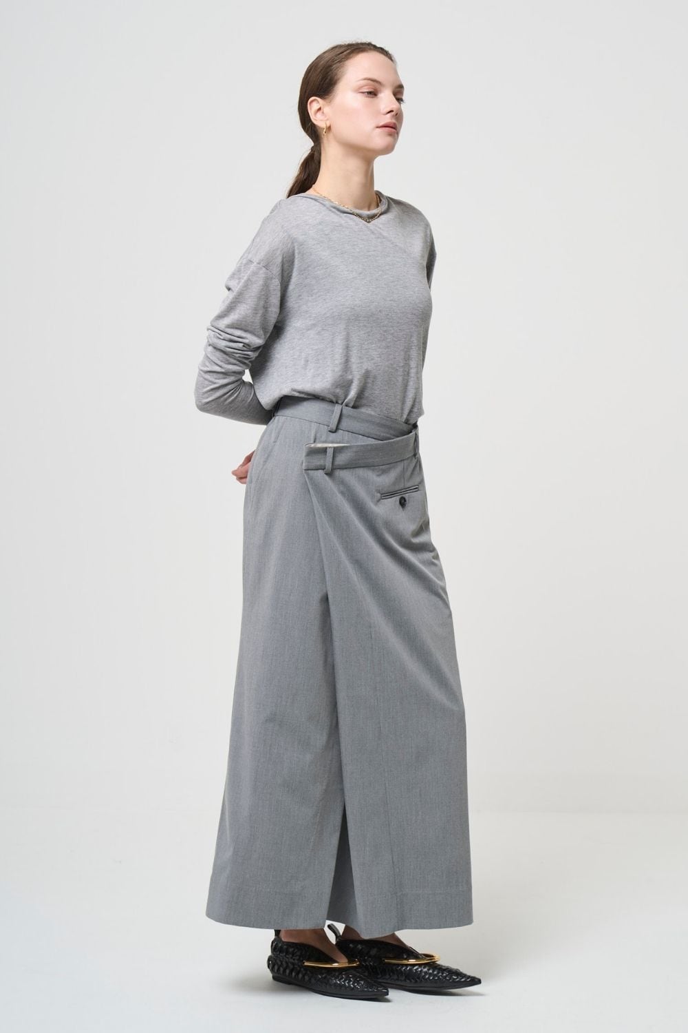 ミニマルなデザインで、こなれた印象を与えてくれる生地と背面のカット