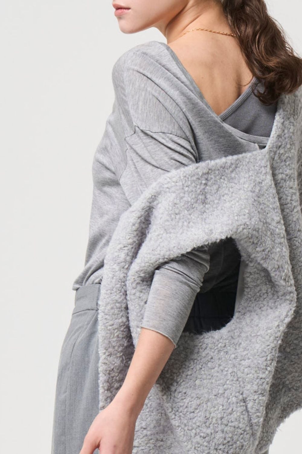 杢が入ったシアー素材はモードな印象