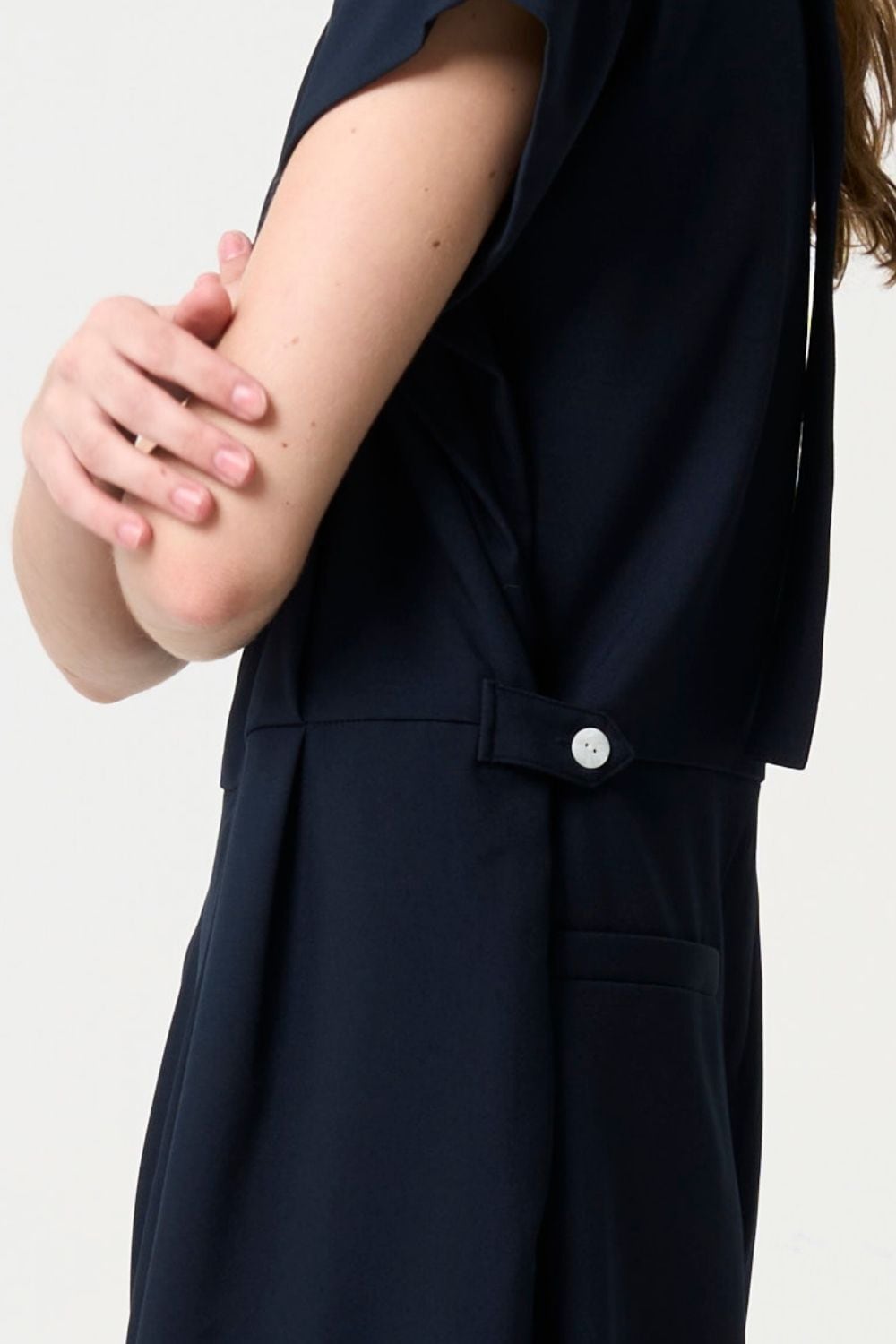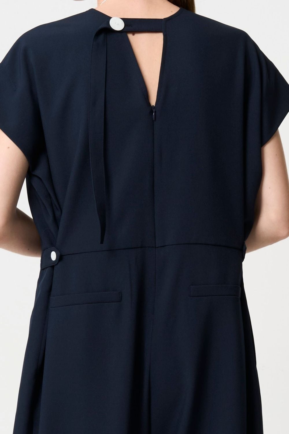 生地をたっぷり使って、ウエストはベルトとボタンで