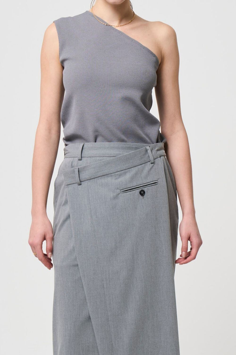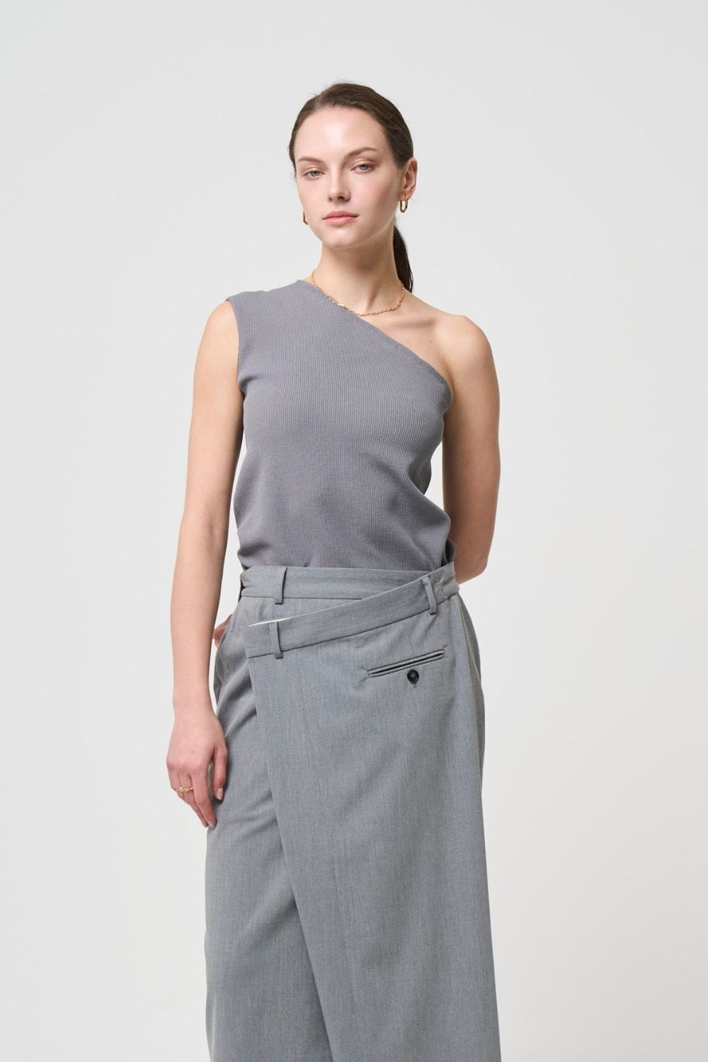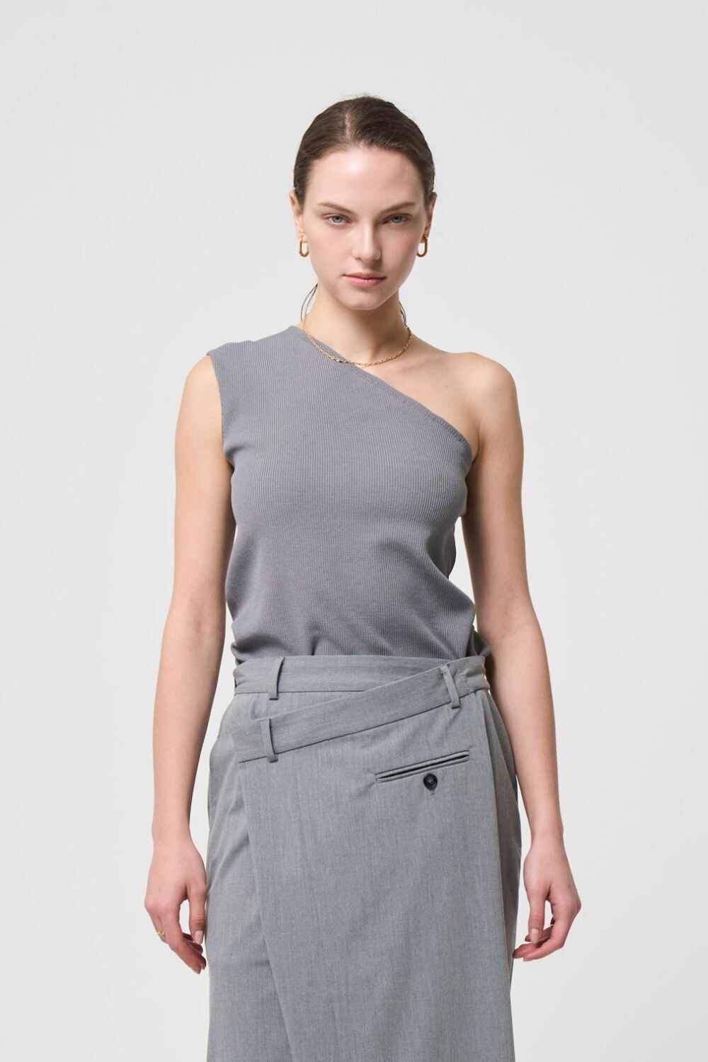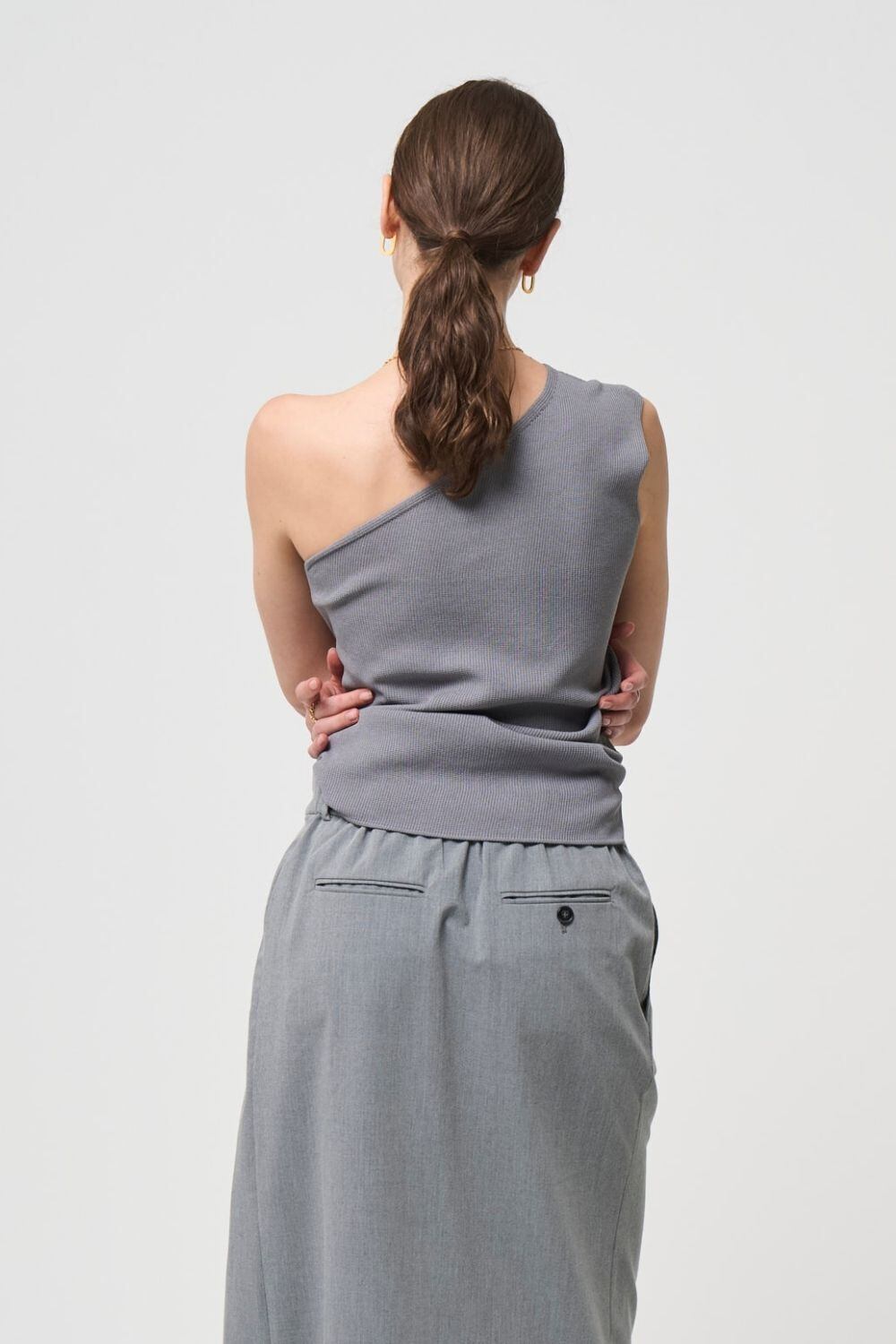 ワンショルダーのダイアゴナル(斜め)のラインが美しく