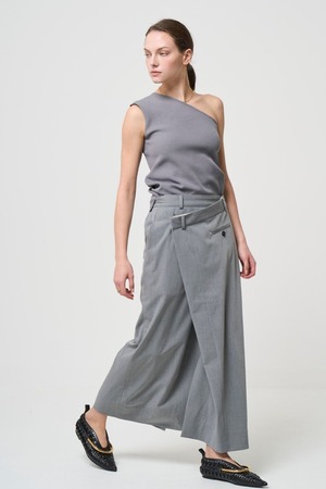 首元の斜めのカットがモードに仕上がります