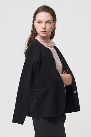 ブークレ感のある編み方で、立体感がありソフトな肌触りのリラクシーなジャケットです