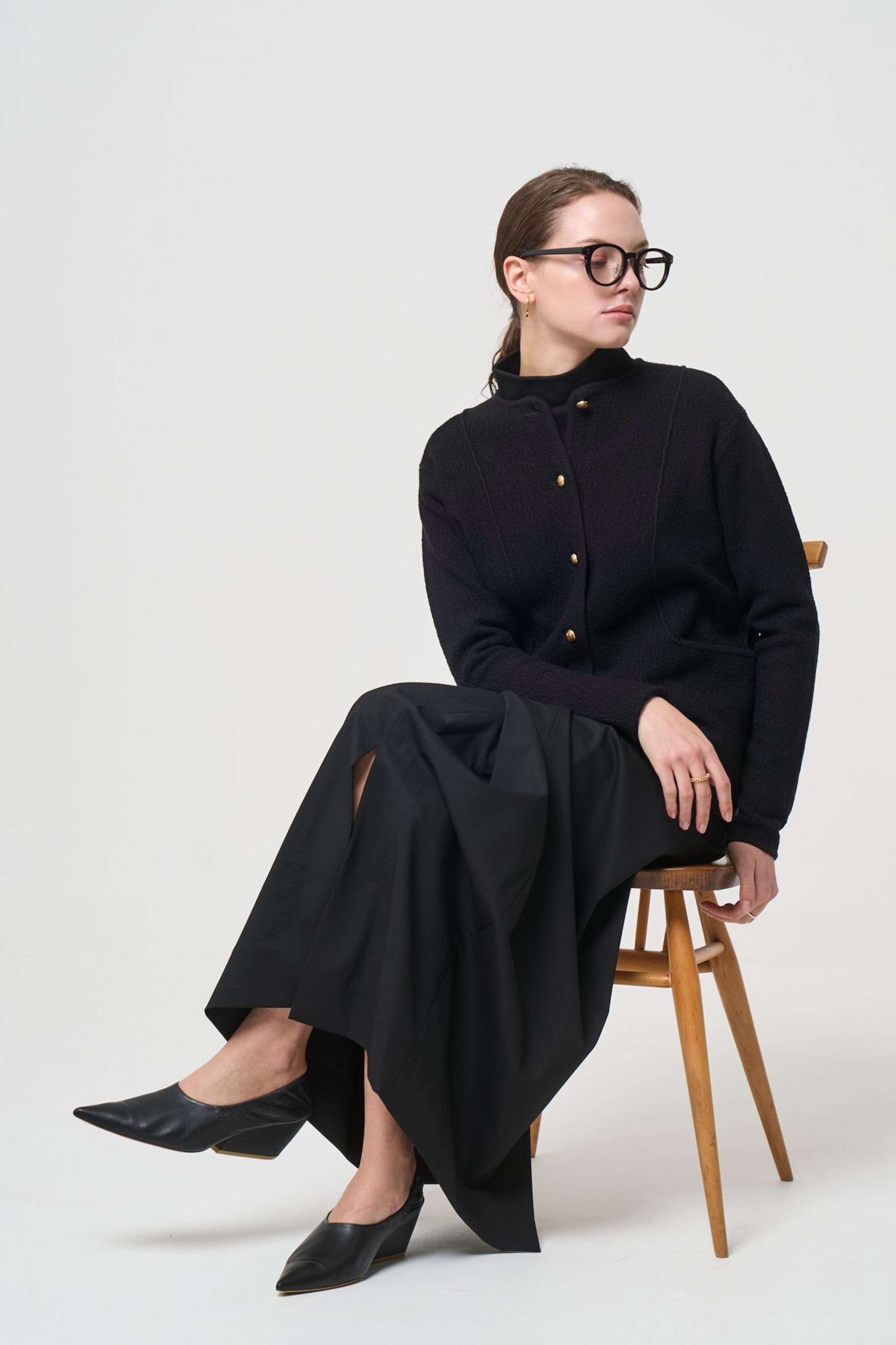 さらっと羽織れて肩がこらないジャケットをニット素材で作りたいと思って企画しました