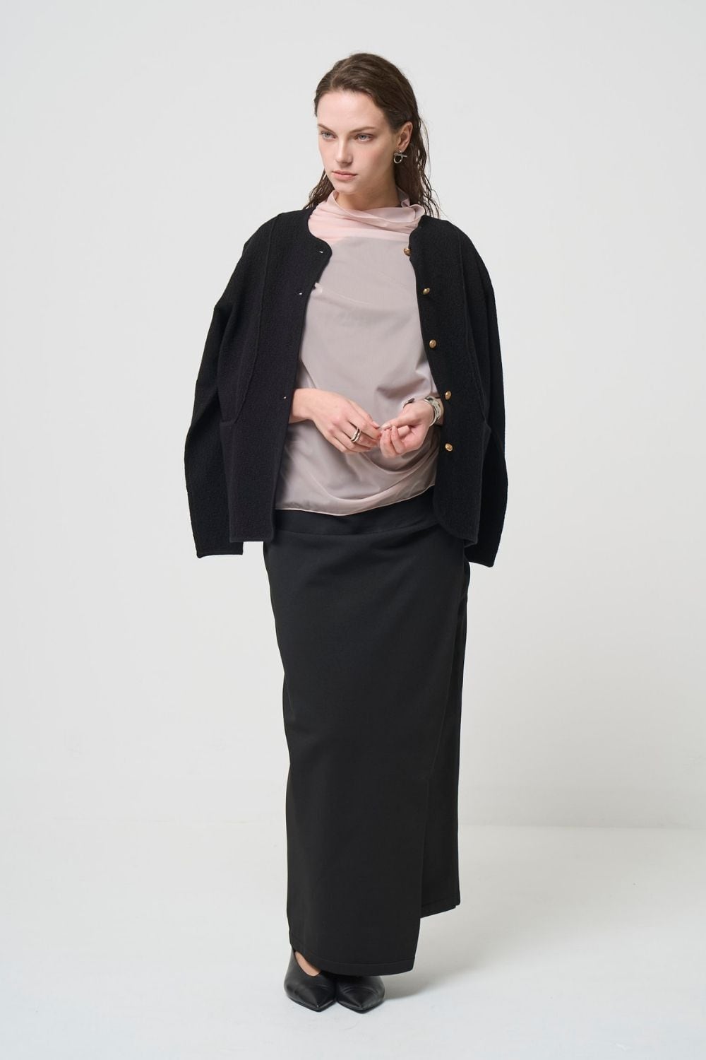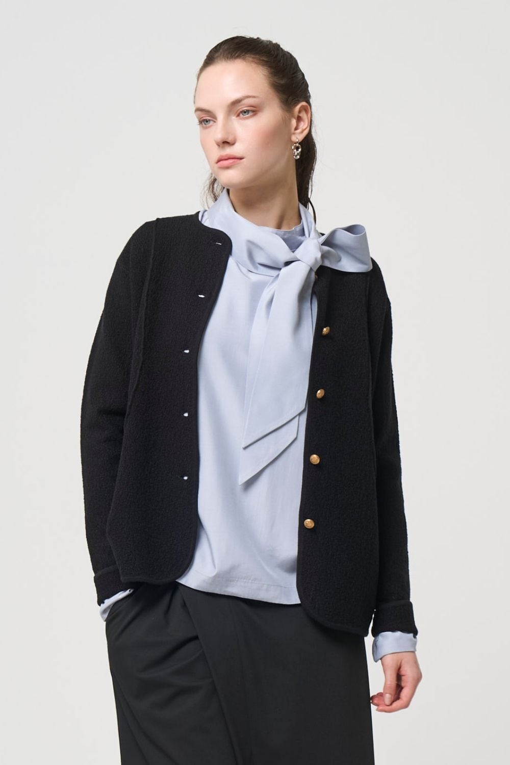 We designed this knit jacket to be effortlessly draped over your shoulders without causing stiffness.