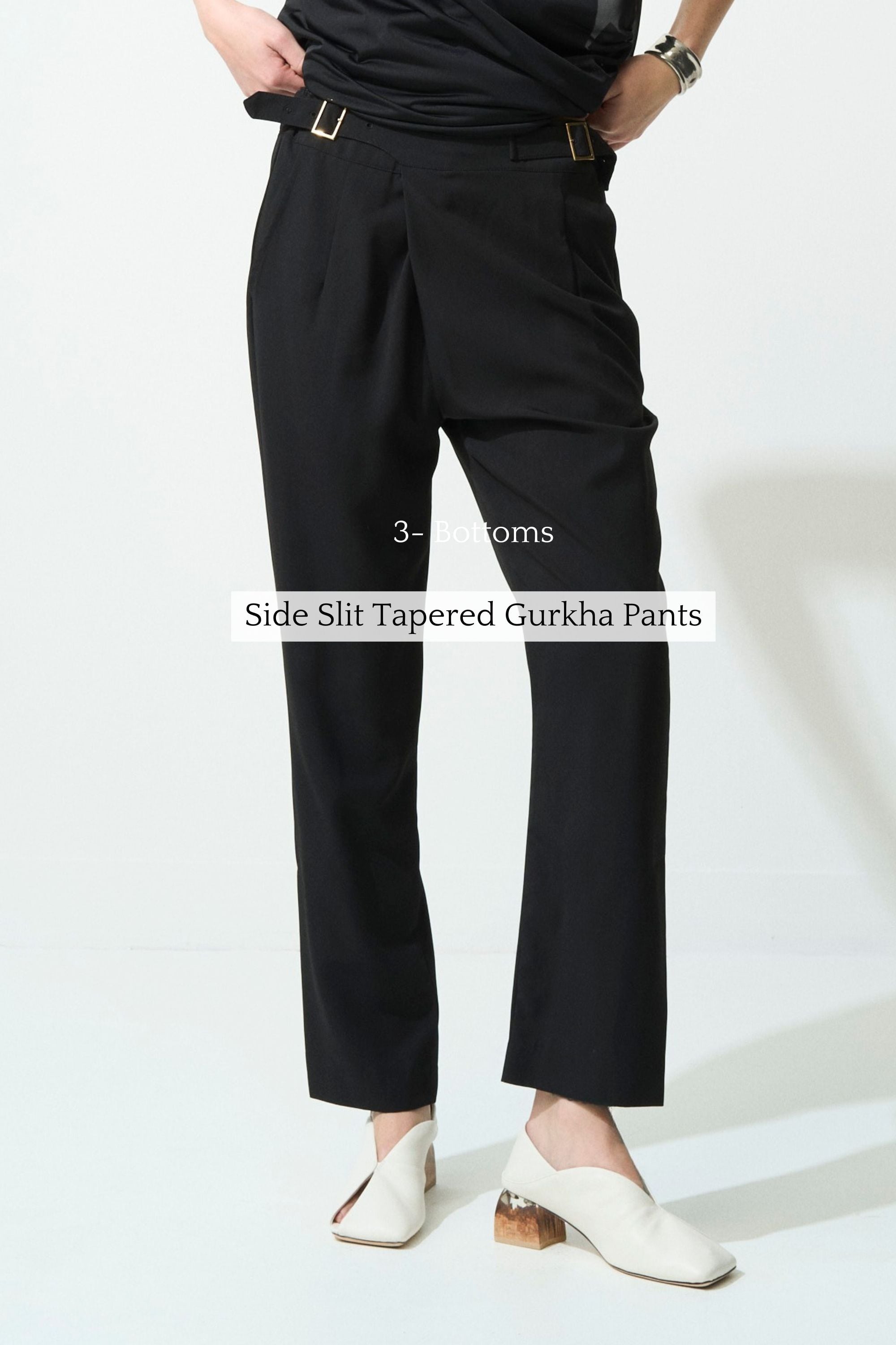 Side Slit Tapered Gurkha Pants - THIN - BLACK