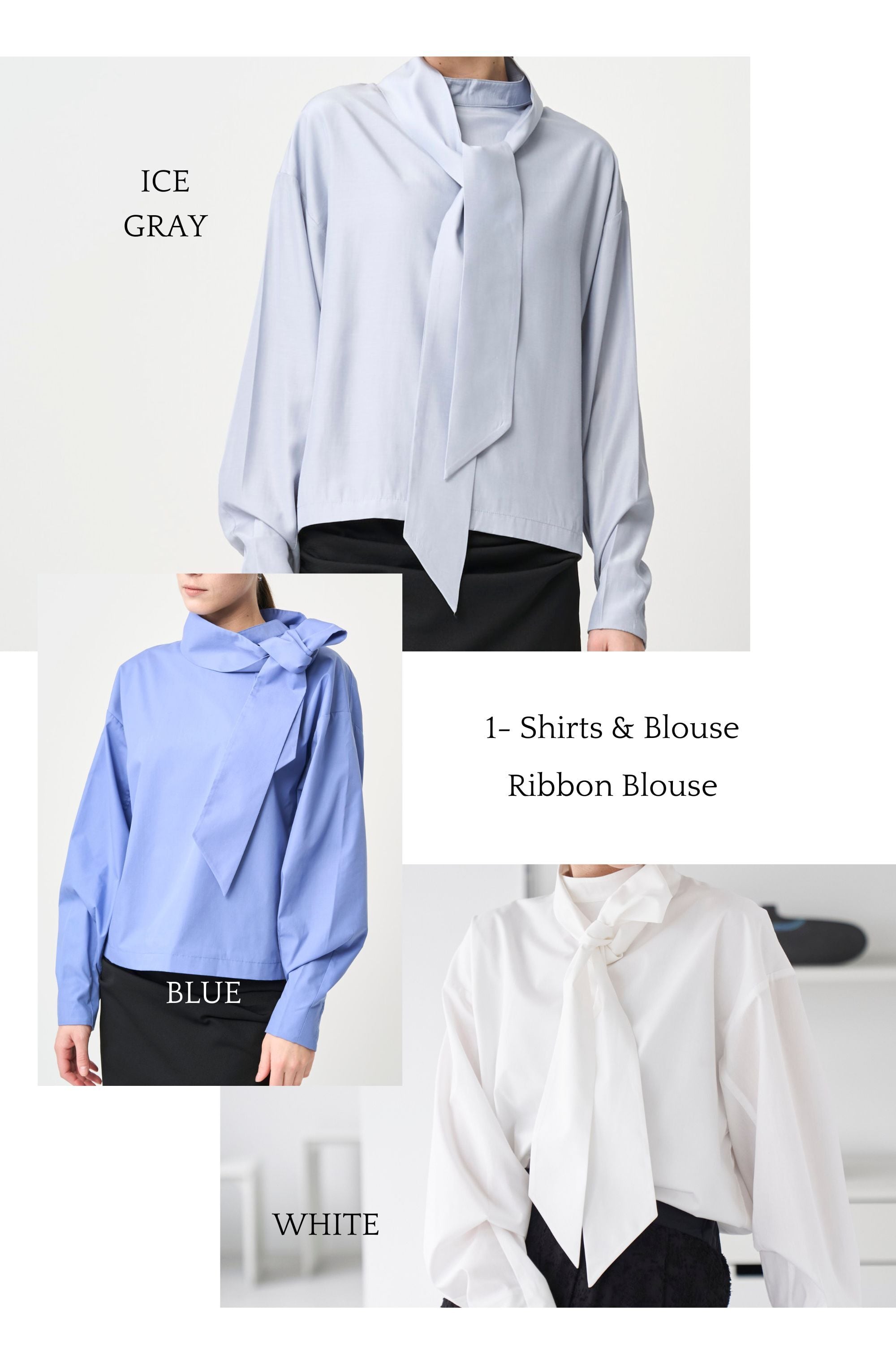 Ribbon Blouse - WHITE・BLUE・ICE GRAY
