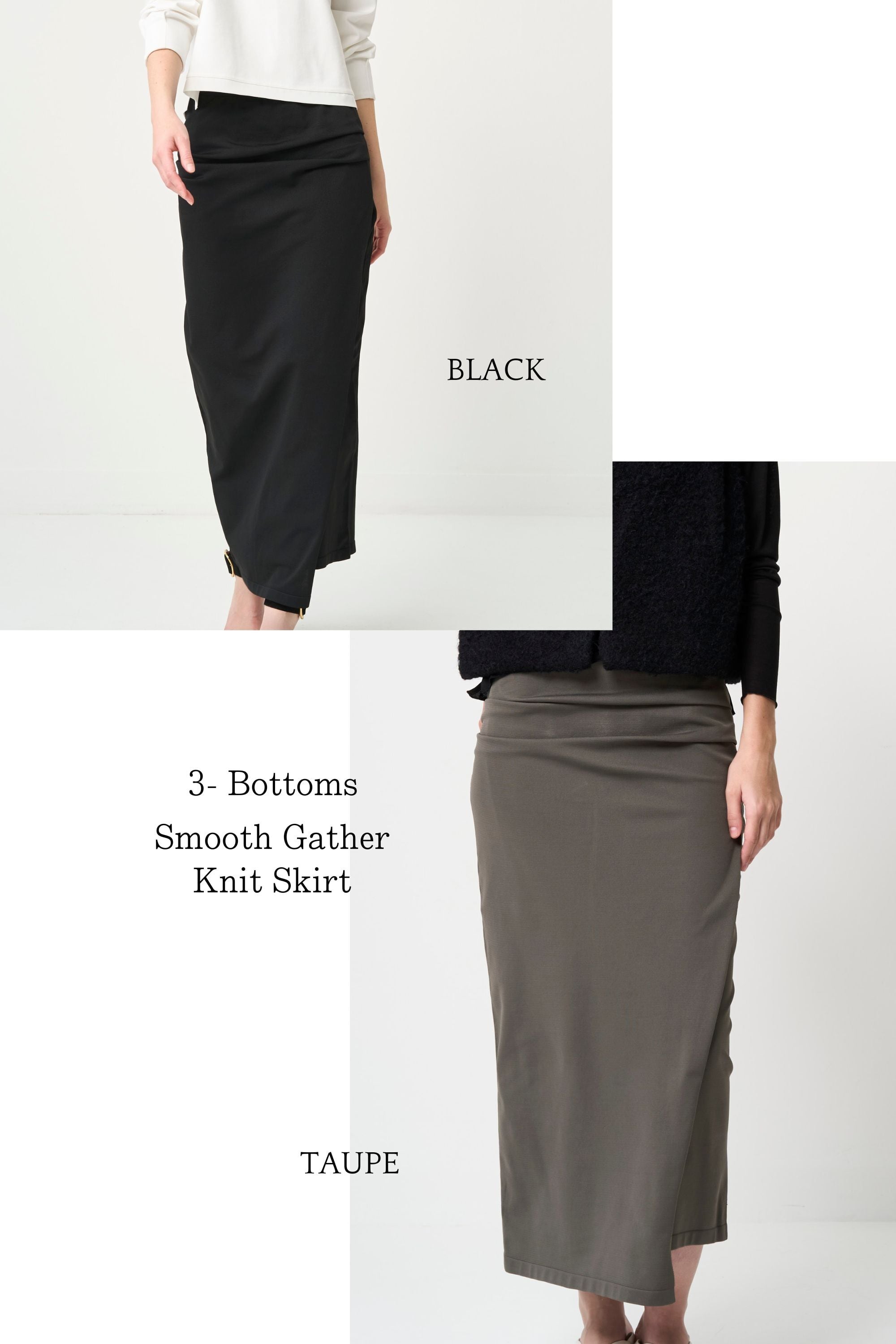 Smooth Gather Knit Skirt - BLACK・TAUPE