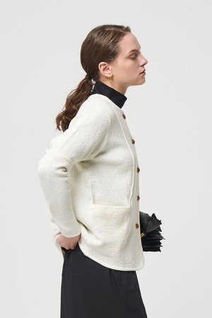 ブークレ感のある編み方で、立体感がありソフトな肌触りのリラクシーなジャケットです