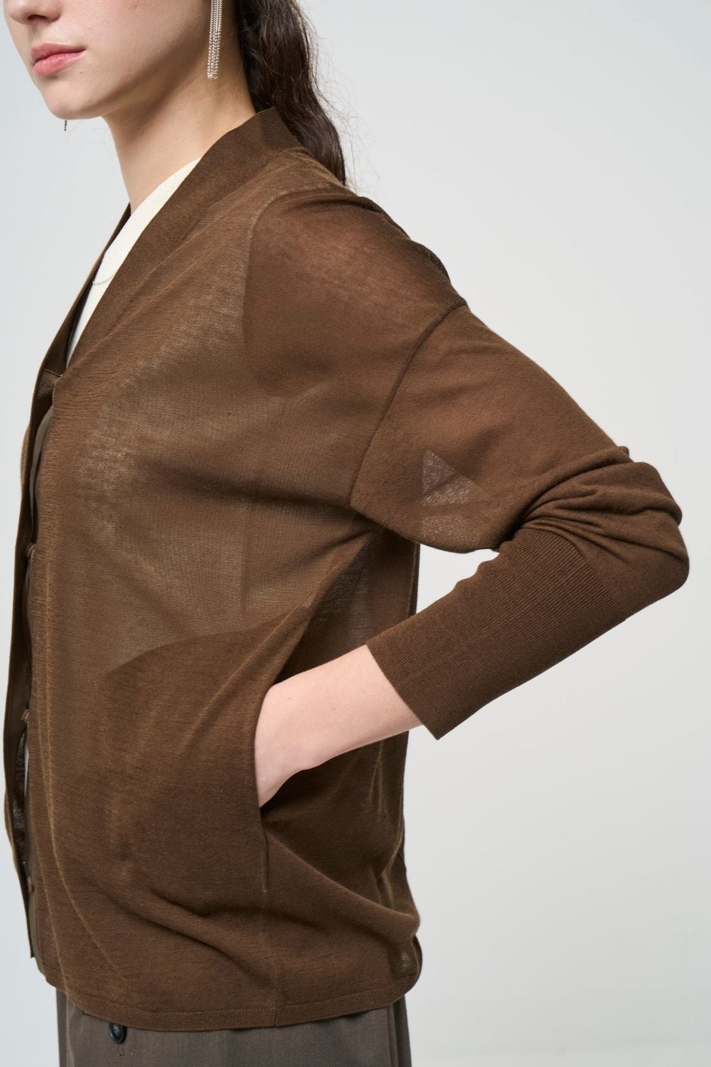 透け感のあるシアーな編地が見た目にも涼しく、真夏の冷房対策や日除けとしても活躍します シアー素材には珍しく、両サイドにポケットを完備しているのも嬉しいポイントです