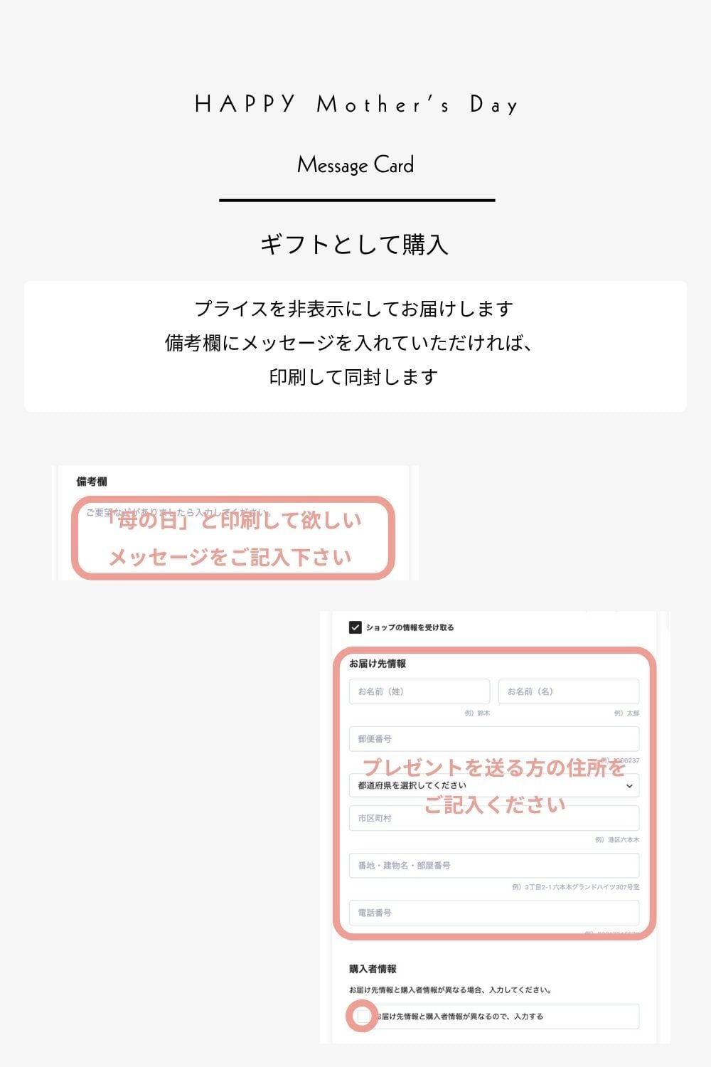 ・③オンラインからプレゼント購入で、メッセージカードを同封