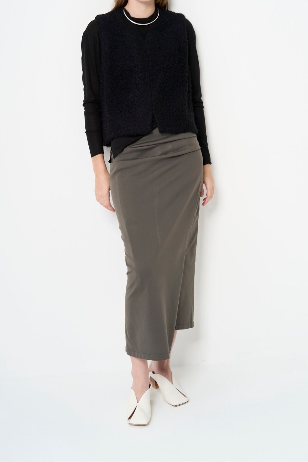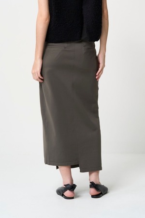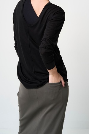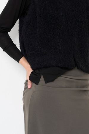 ウエスト部分に左右アシンメトリーなタックを入れて