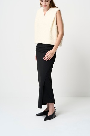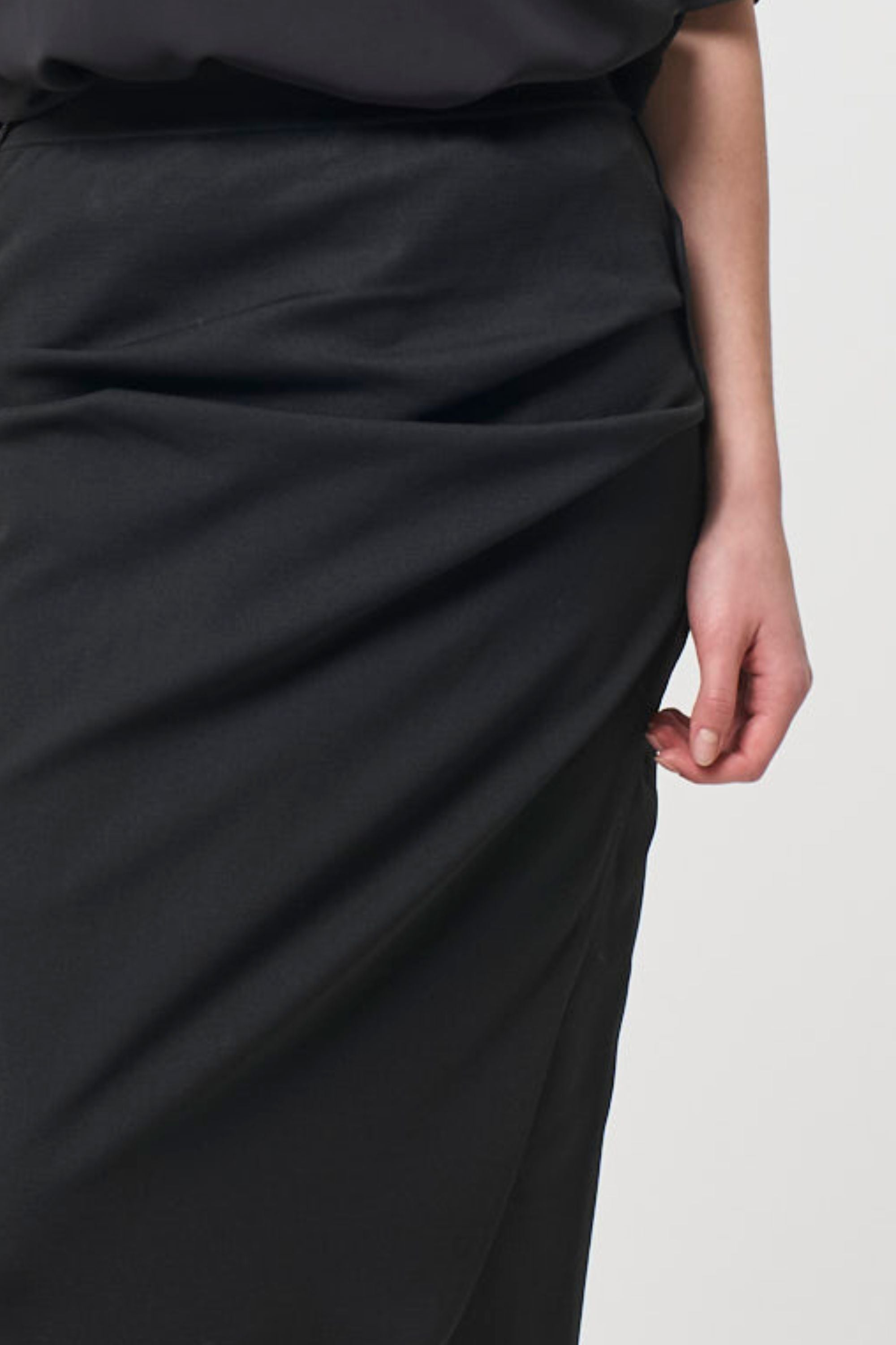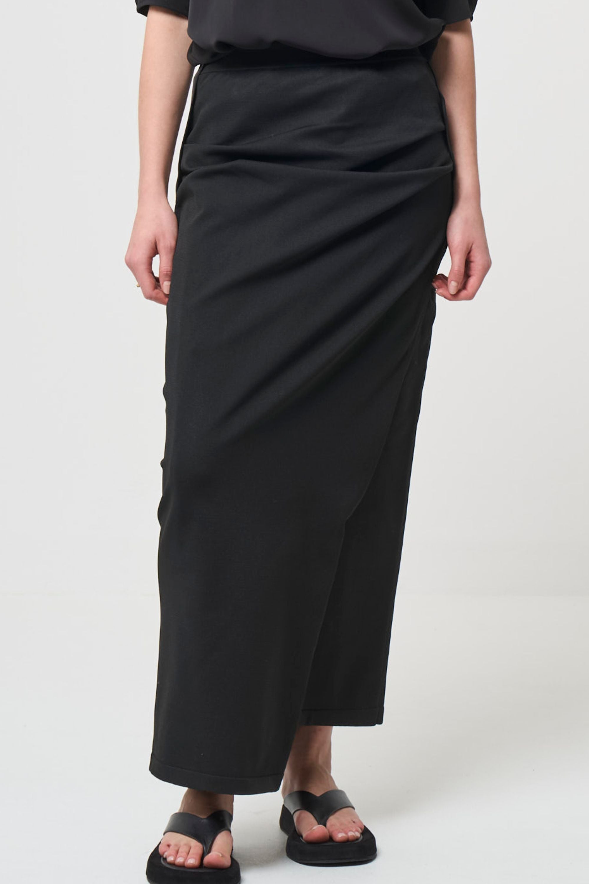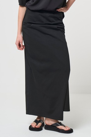 スムース ギャザー ニット スカート - ブラック