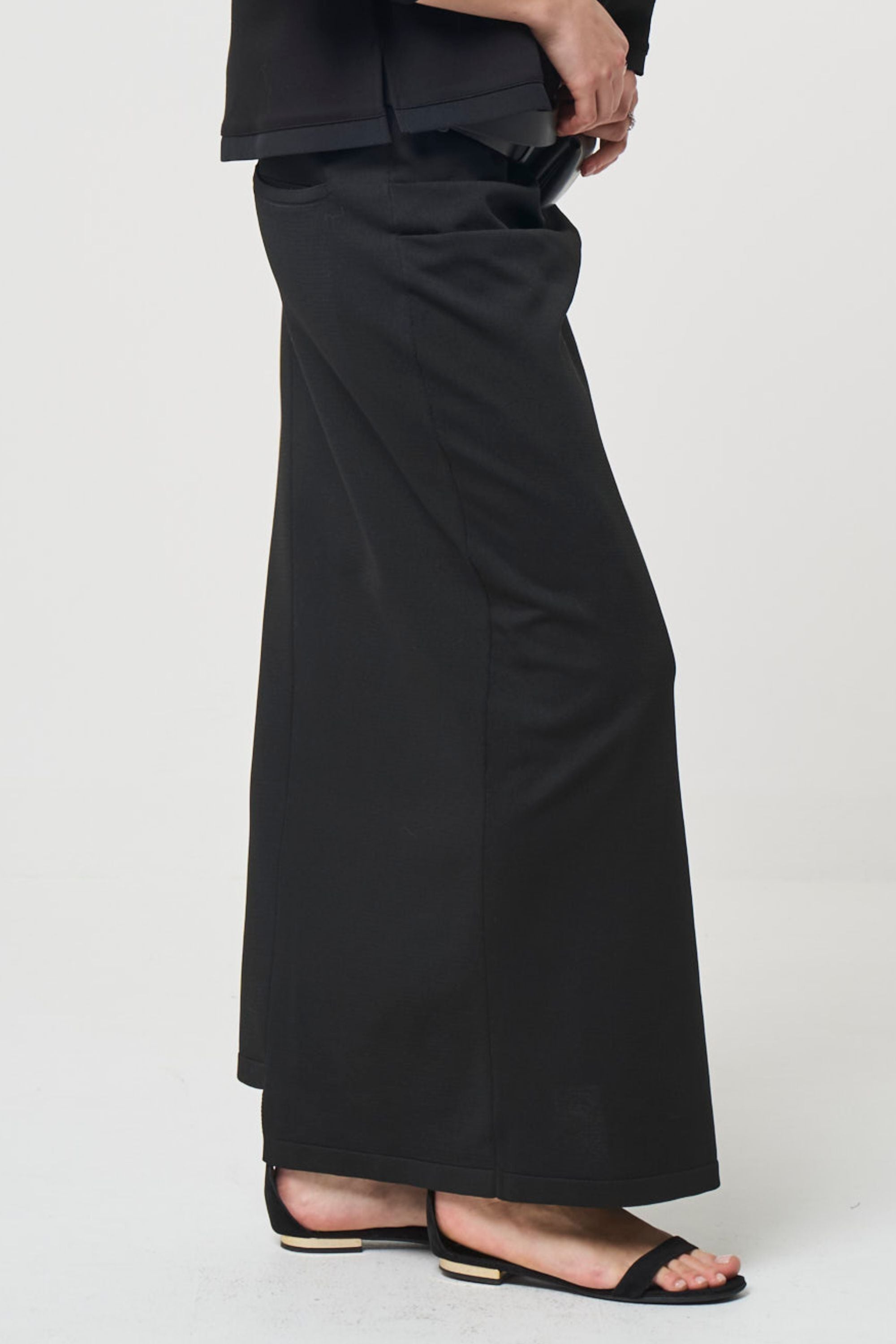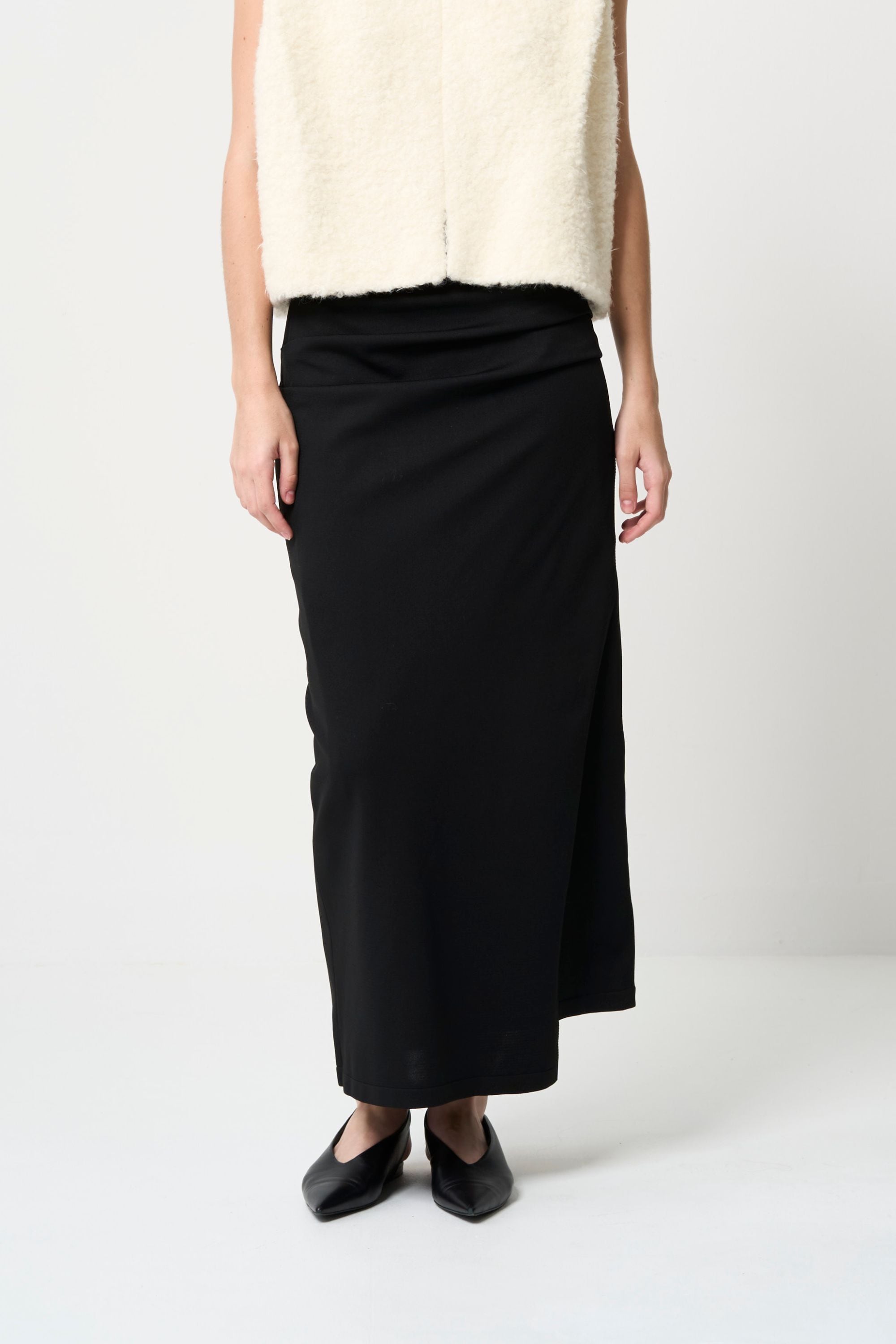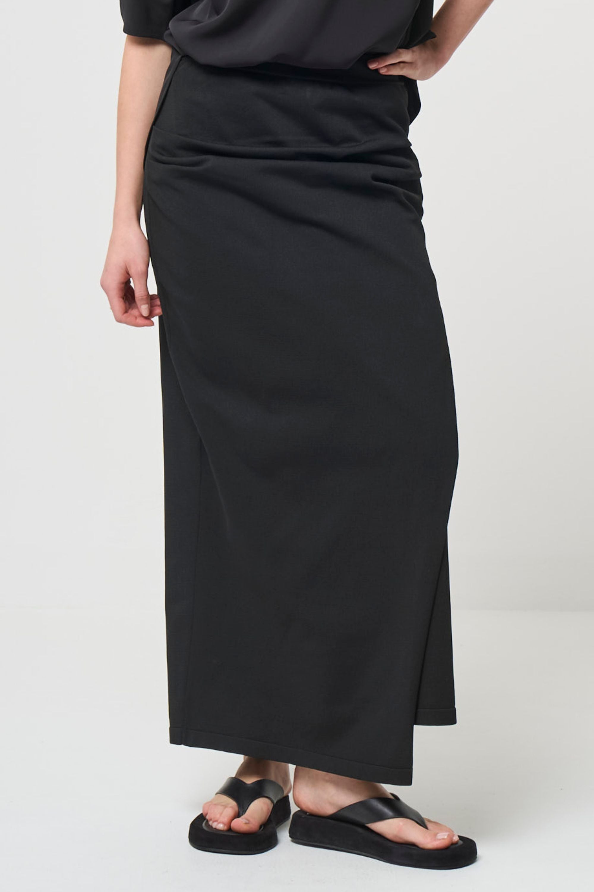 スムース ギャザー ニット スカート - ブラック