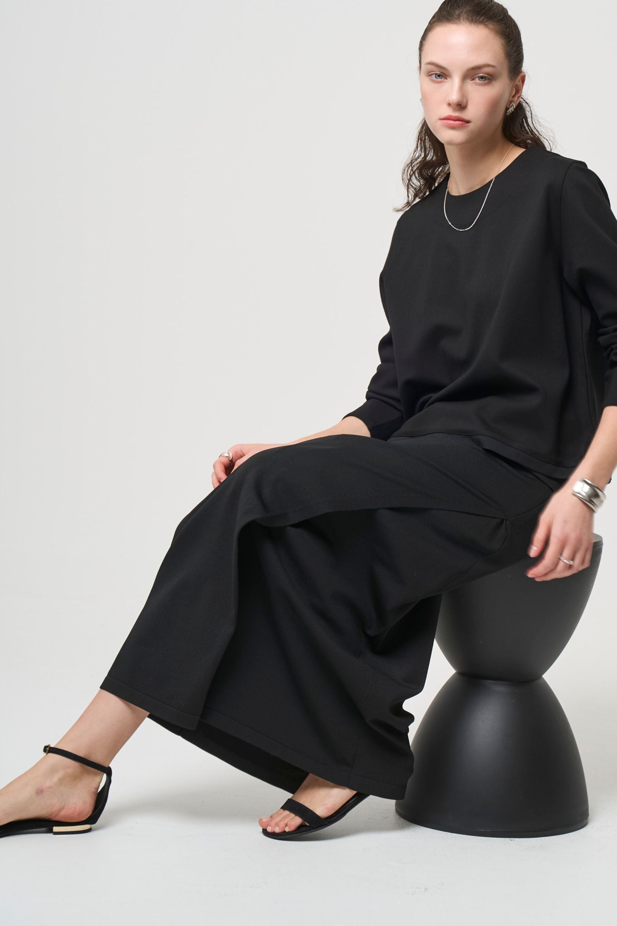 丈が長めのトップスも、クロップド丈もコーディネート
