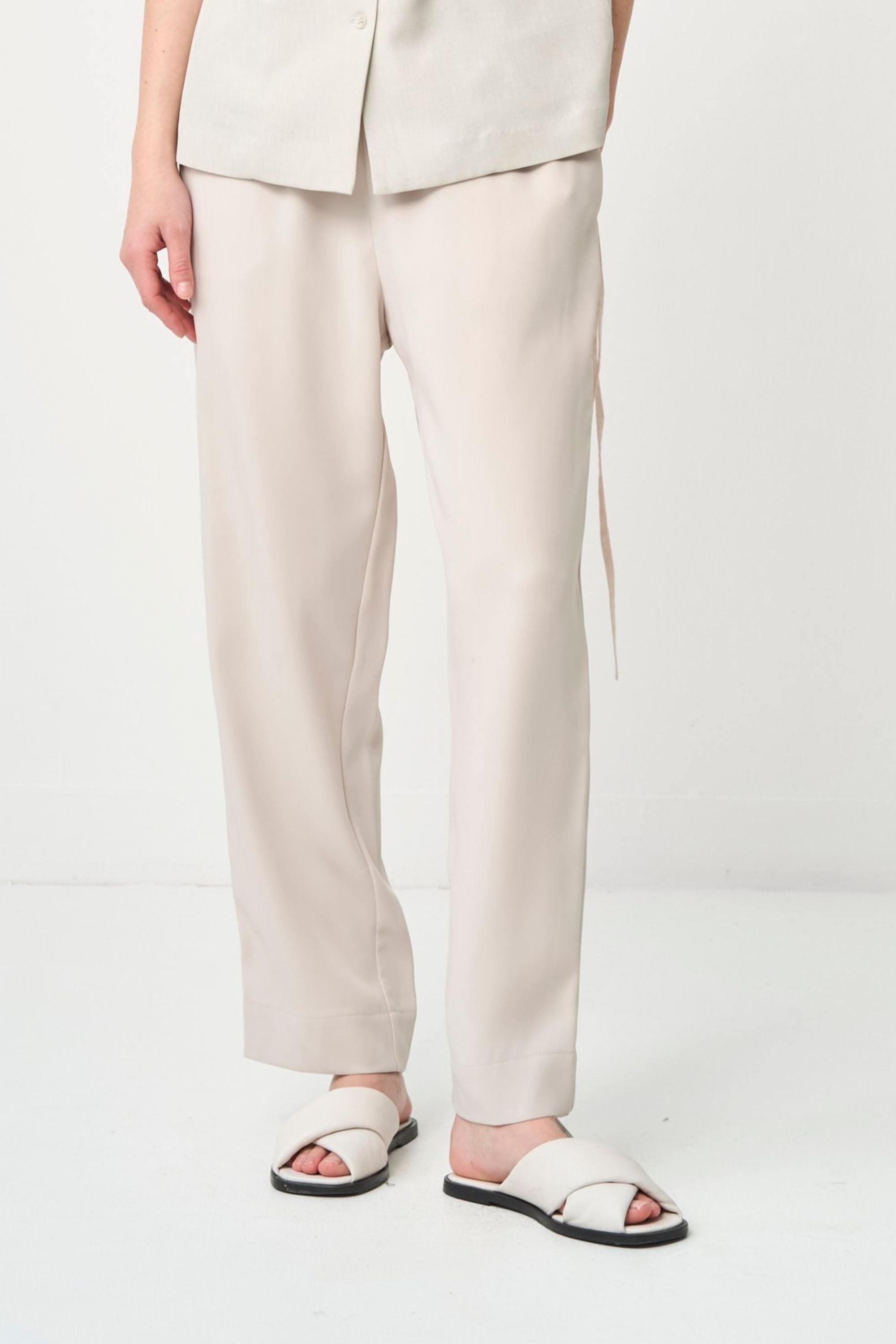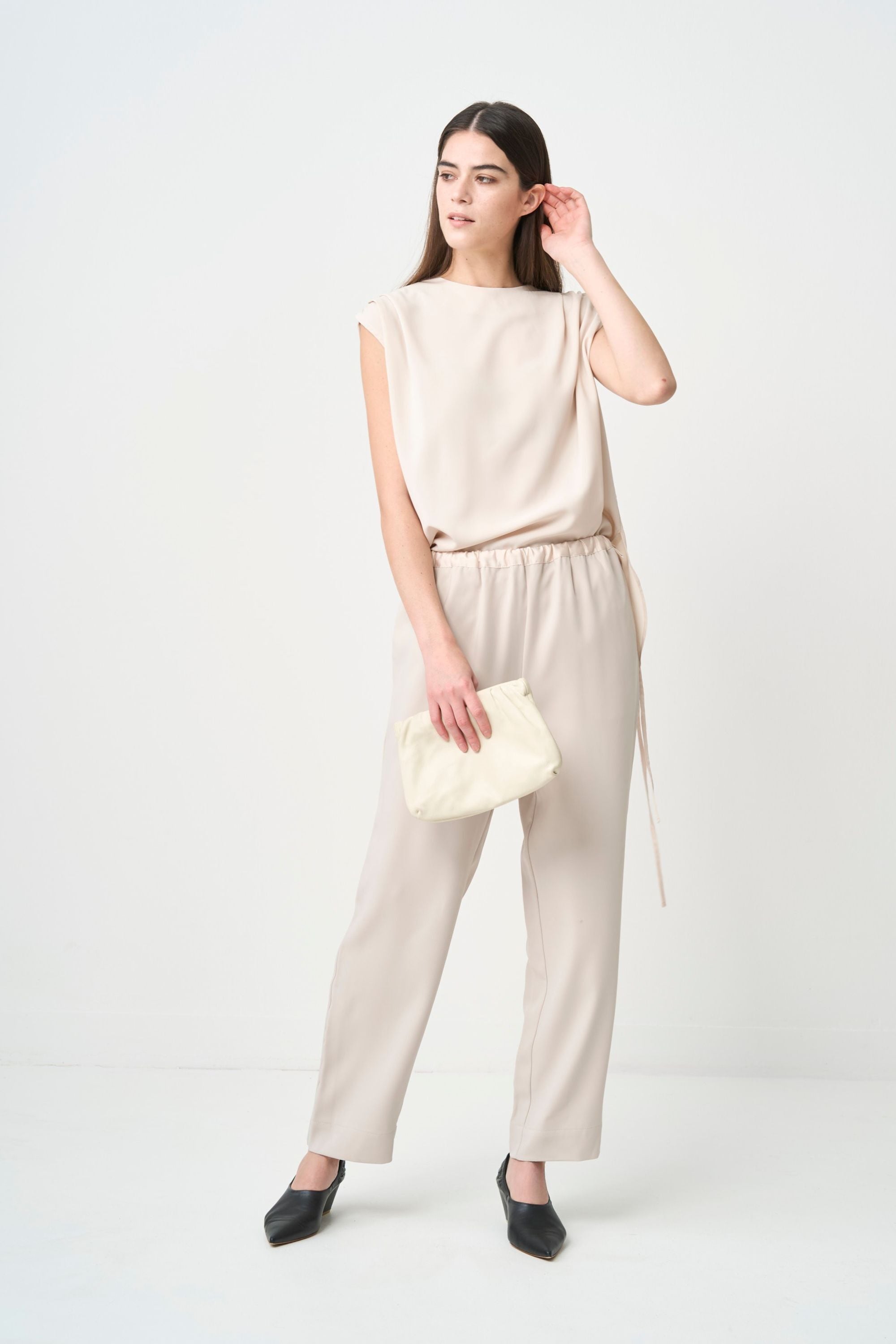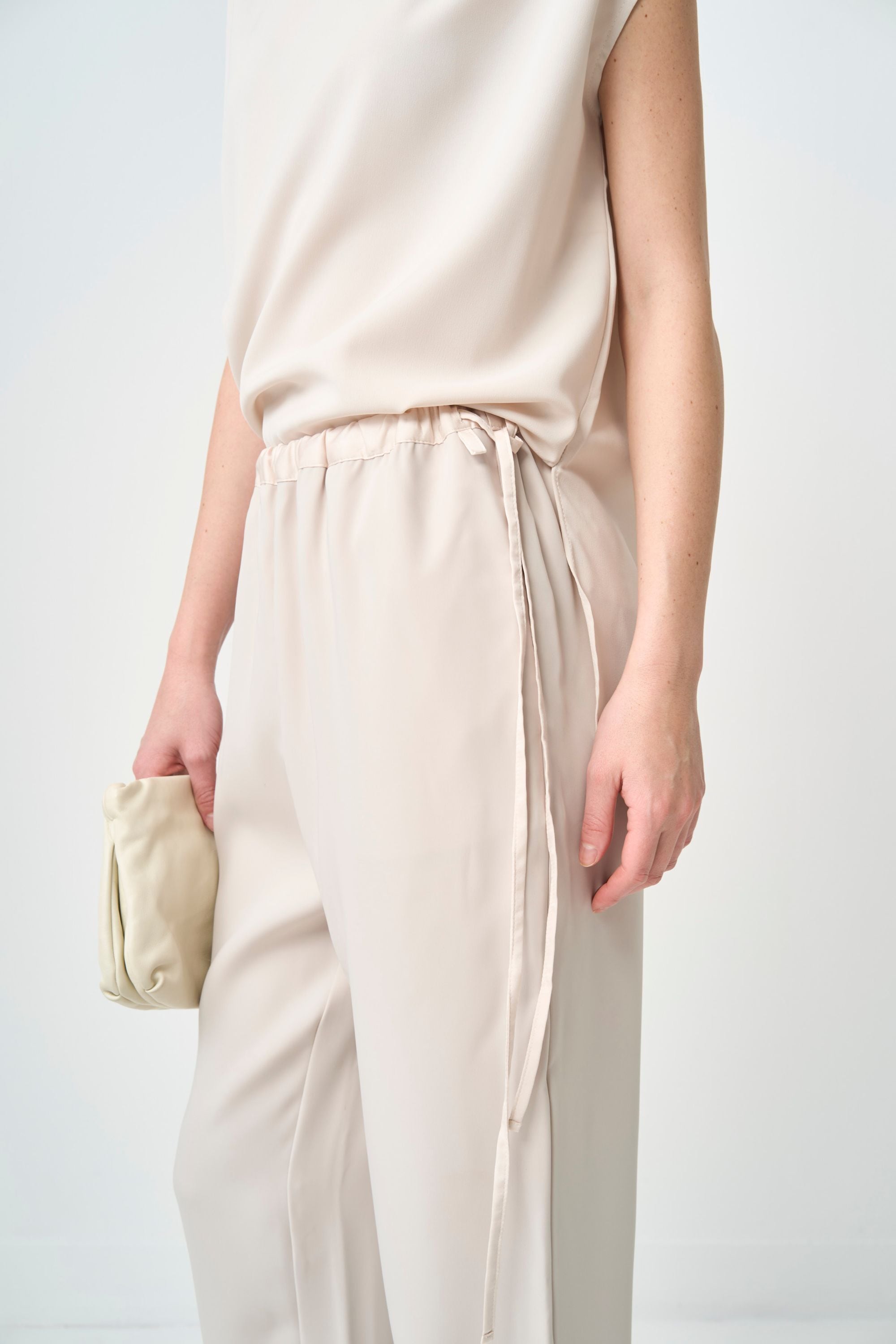 ウエストとリボンをサテン素材で切り替えをつけたことで、