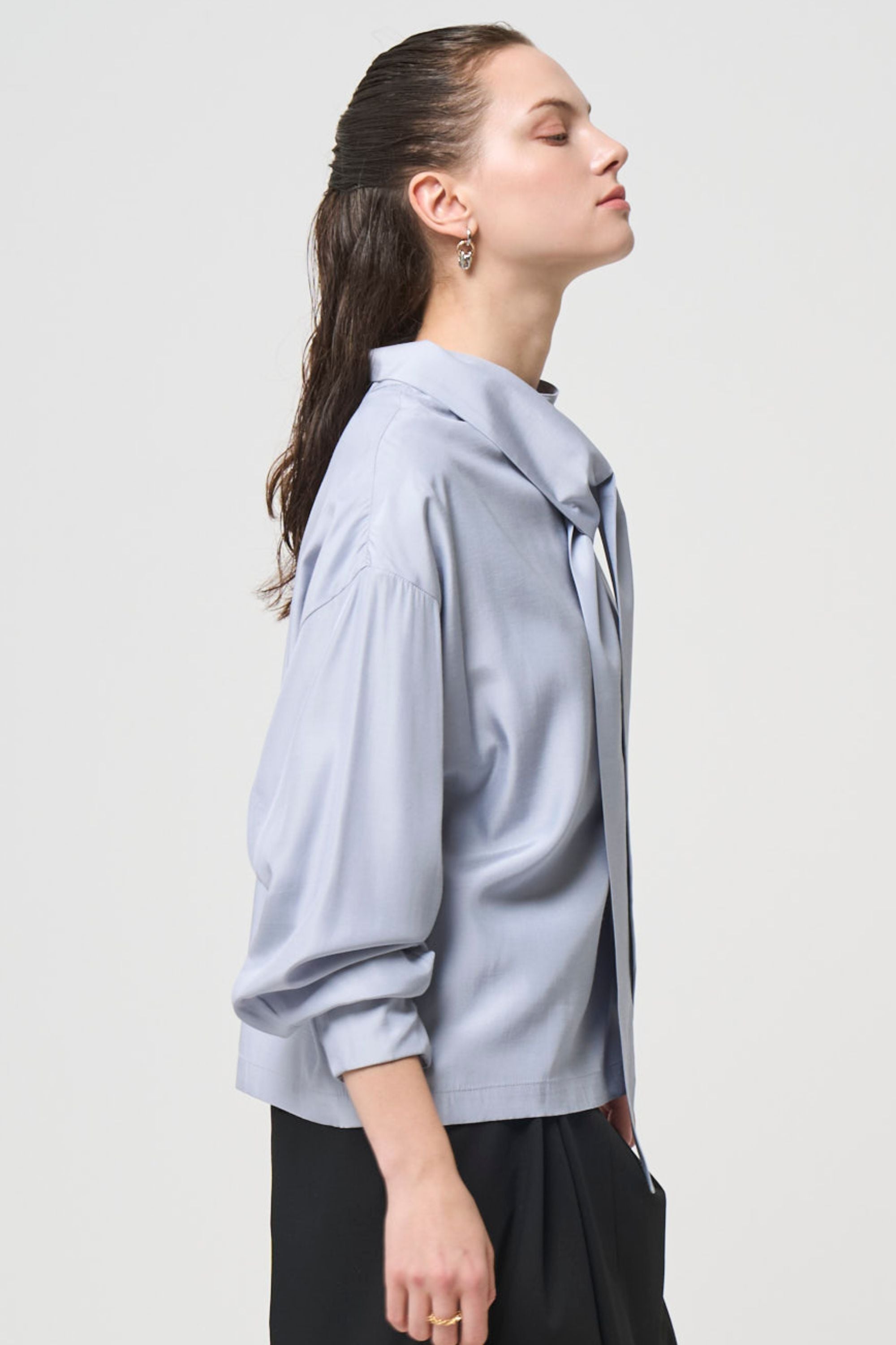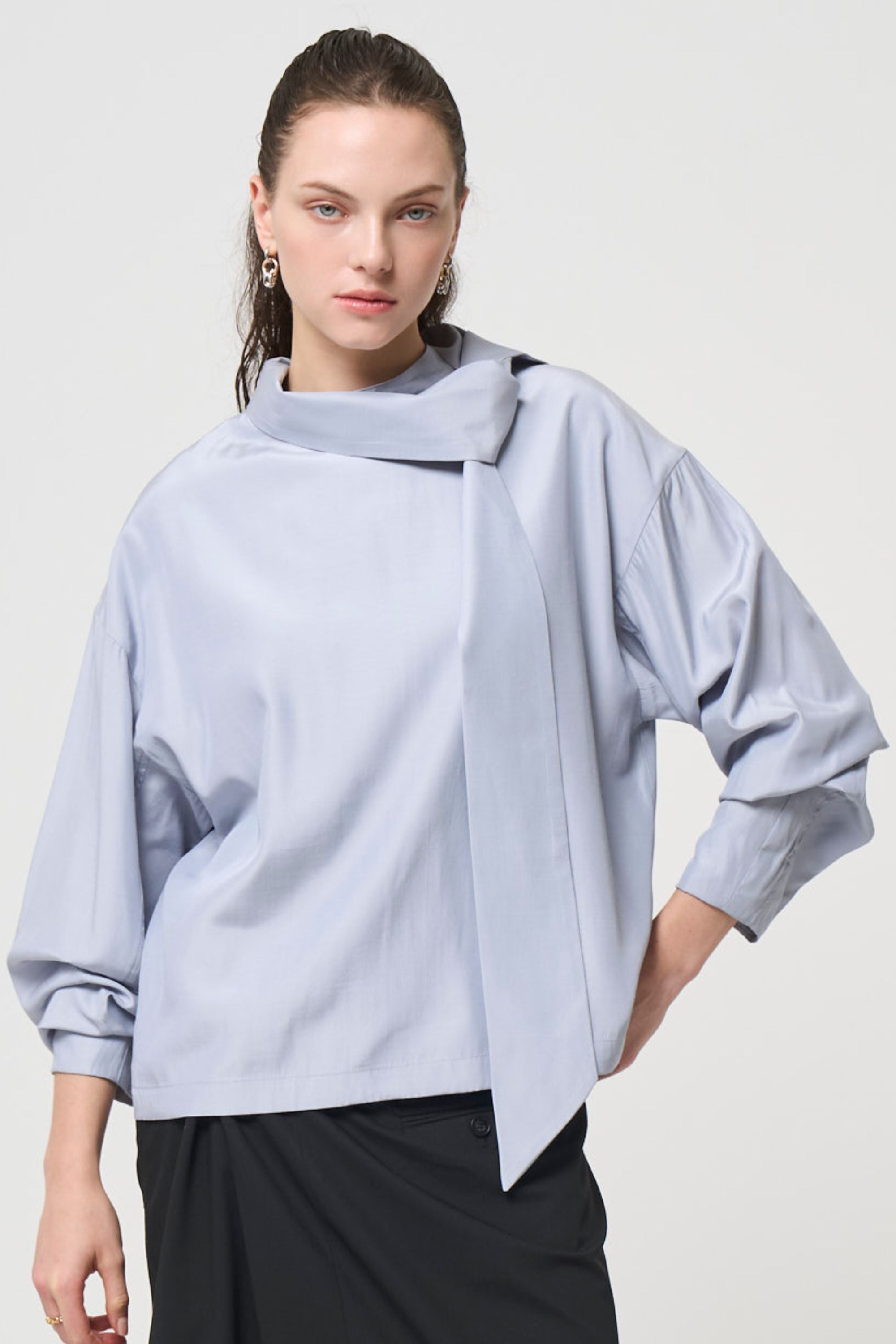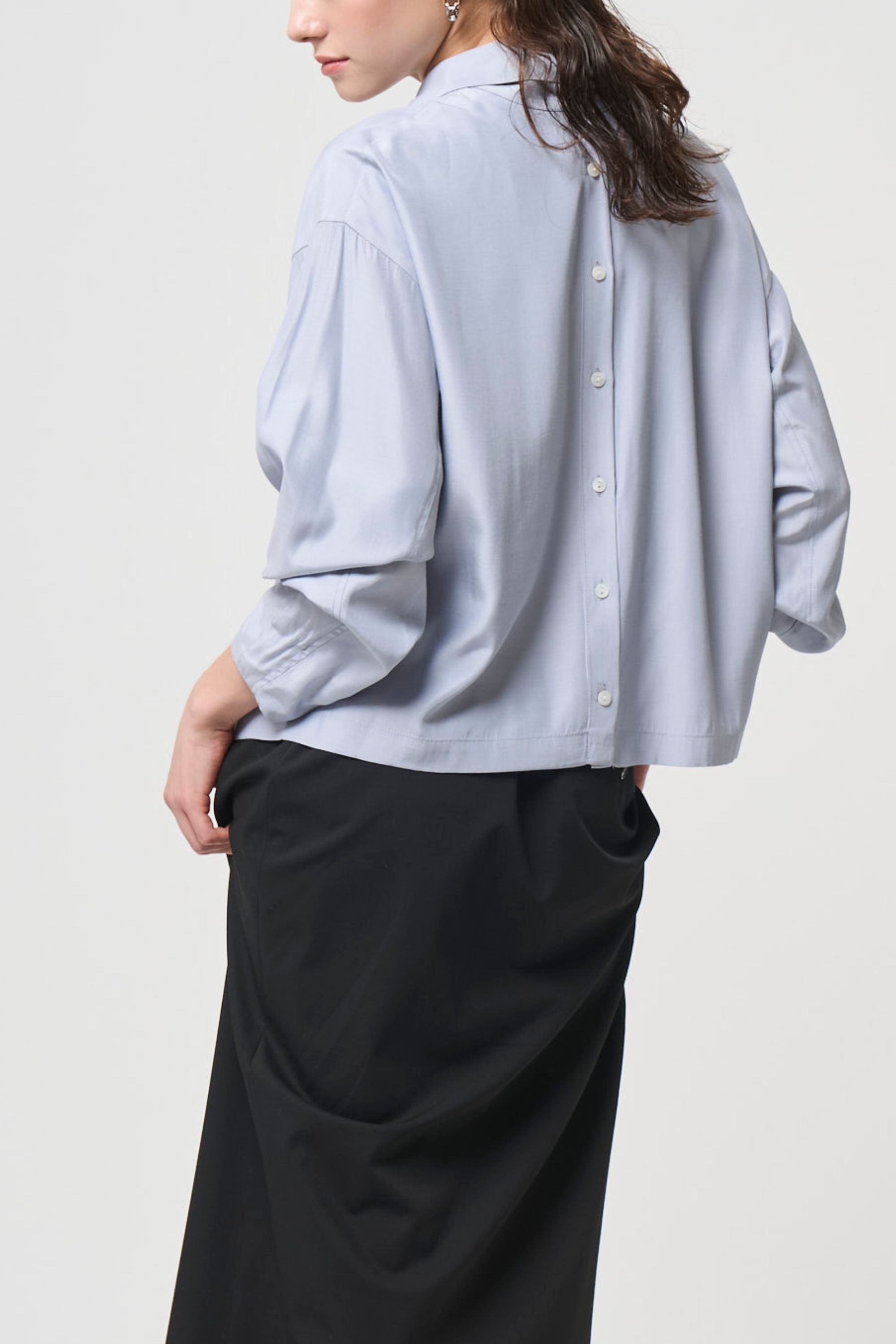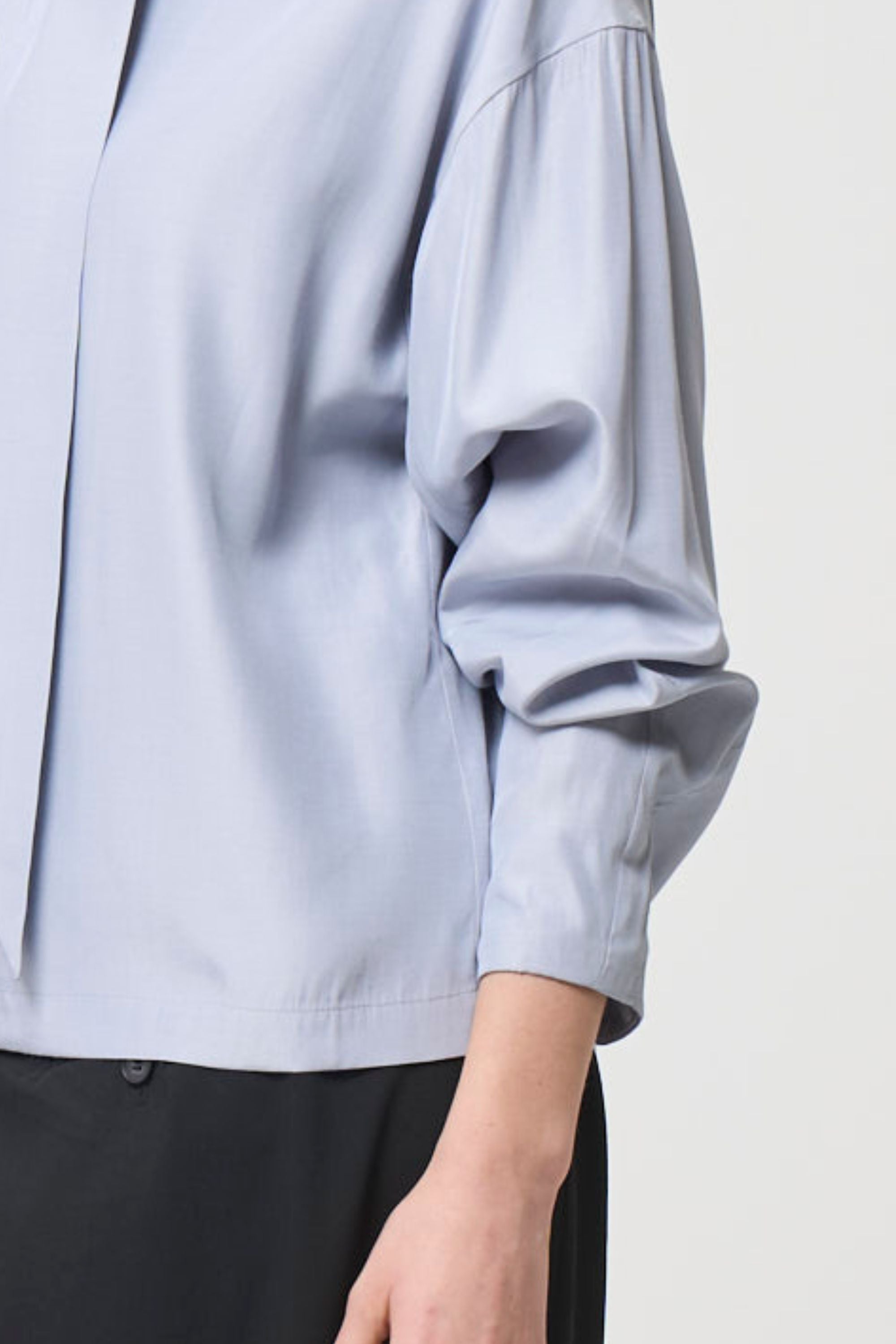 ハリのある生地とシルエットで、袖にボリュームが出るよう