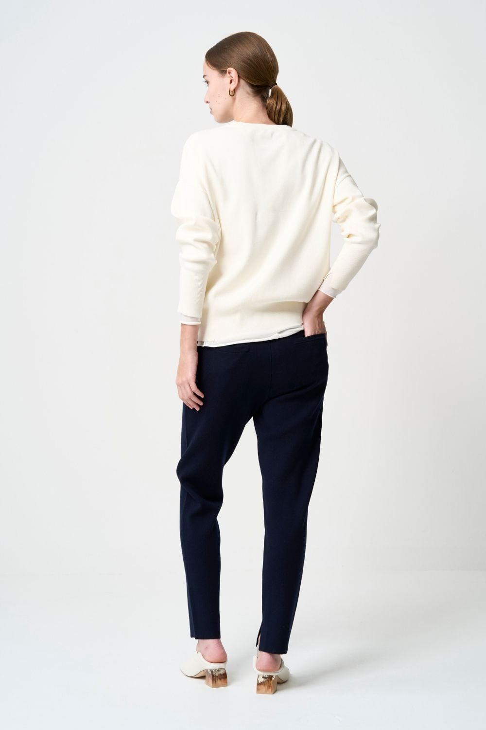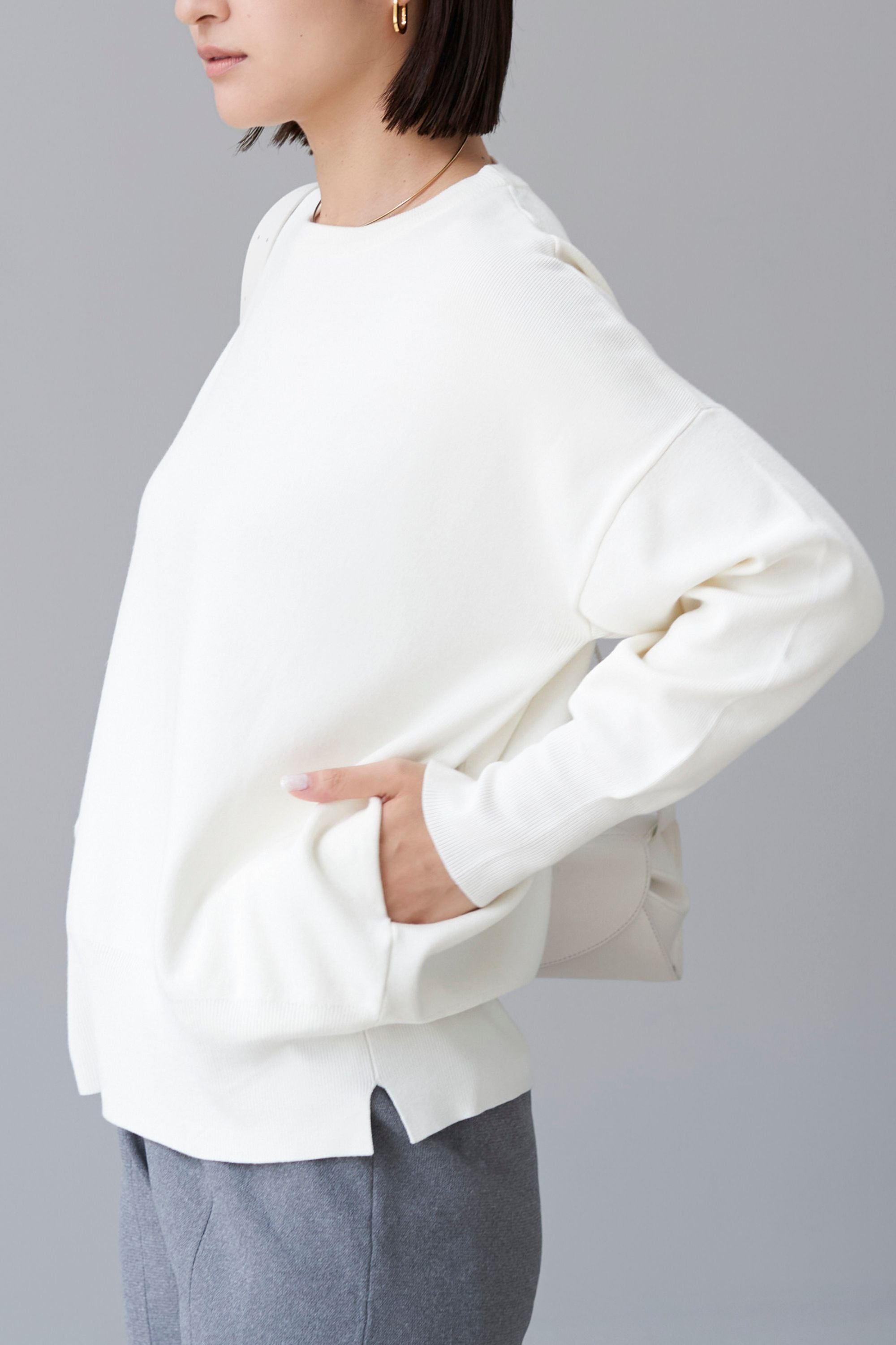 -袖口、裾の長めのリブに、短いスリット付きでアクセント