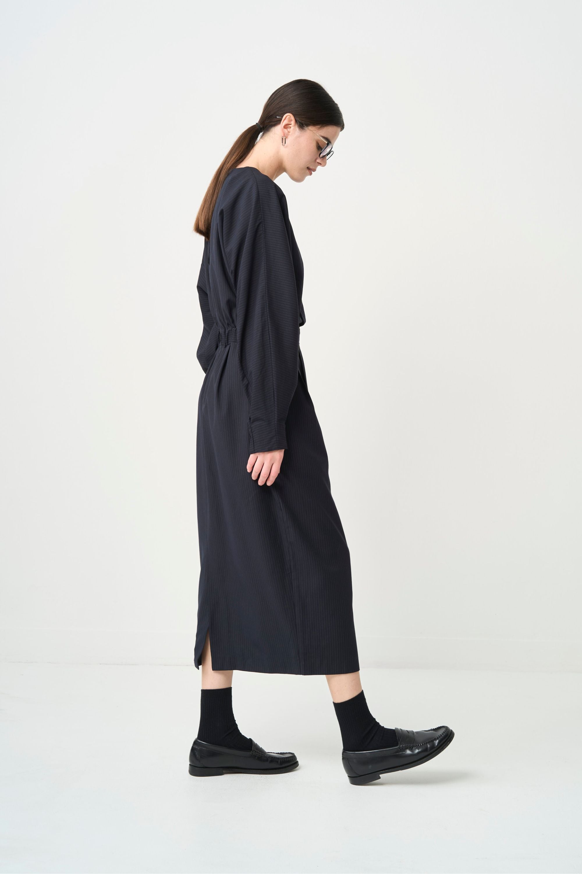 マニッシュな印象の中にも、女性らしいシルエットを取り入れたワンピース