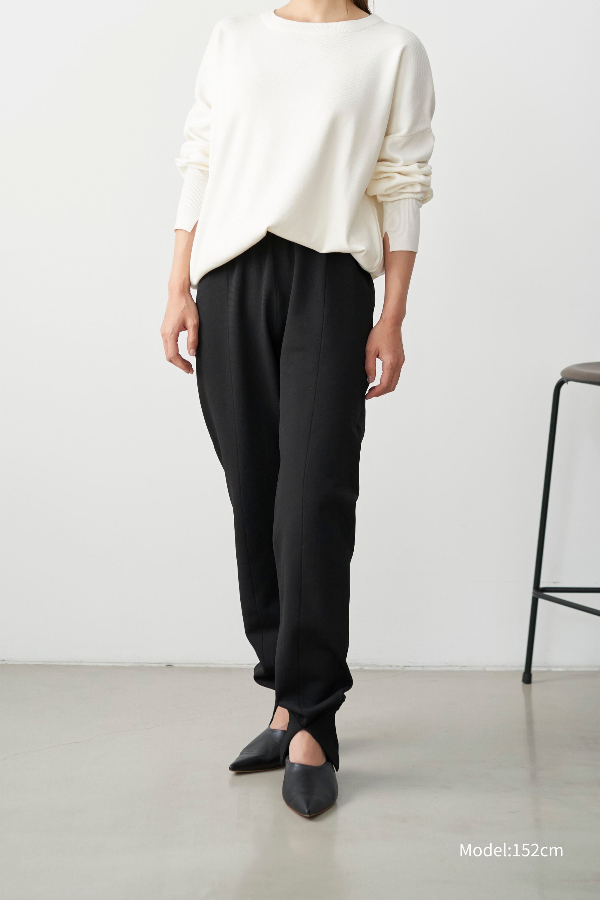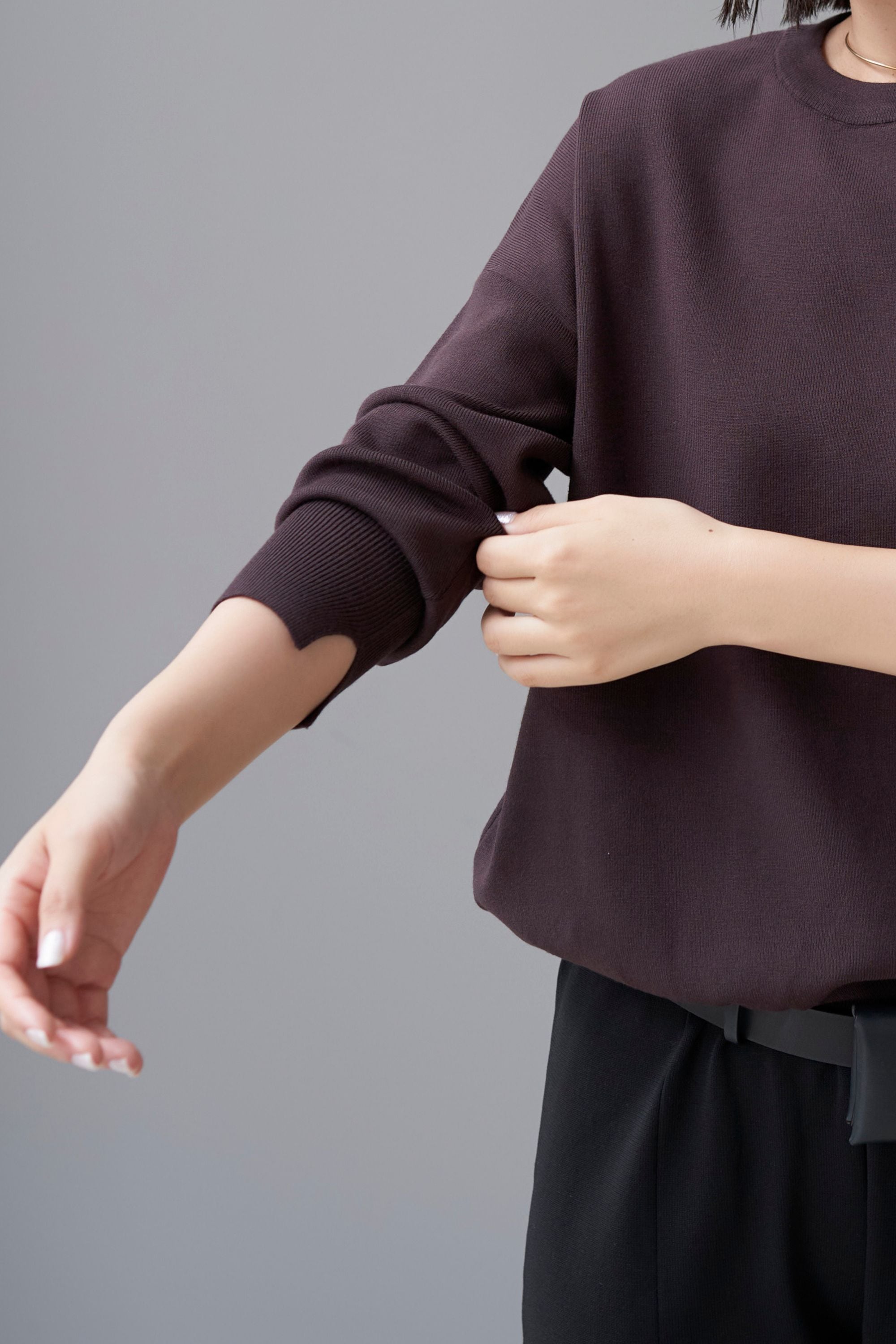 -袖口、裾の長めのリブに、短いスリット付きでアクセント