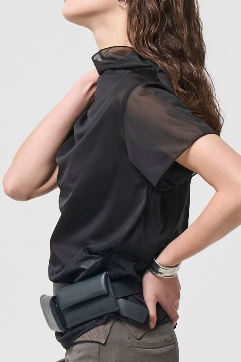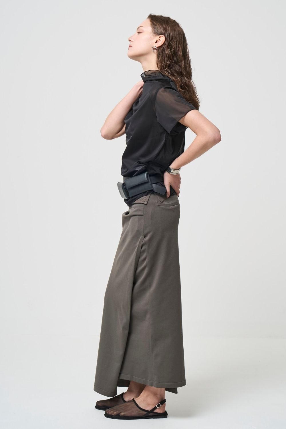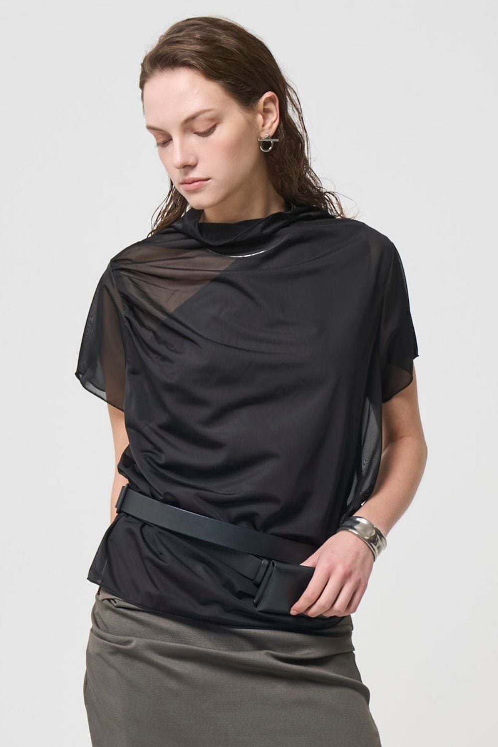 - 広めのボトルネックで首元にくしゅっとした動きを