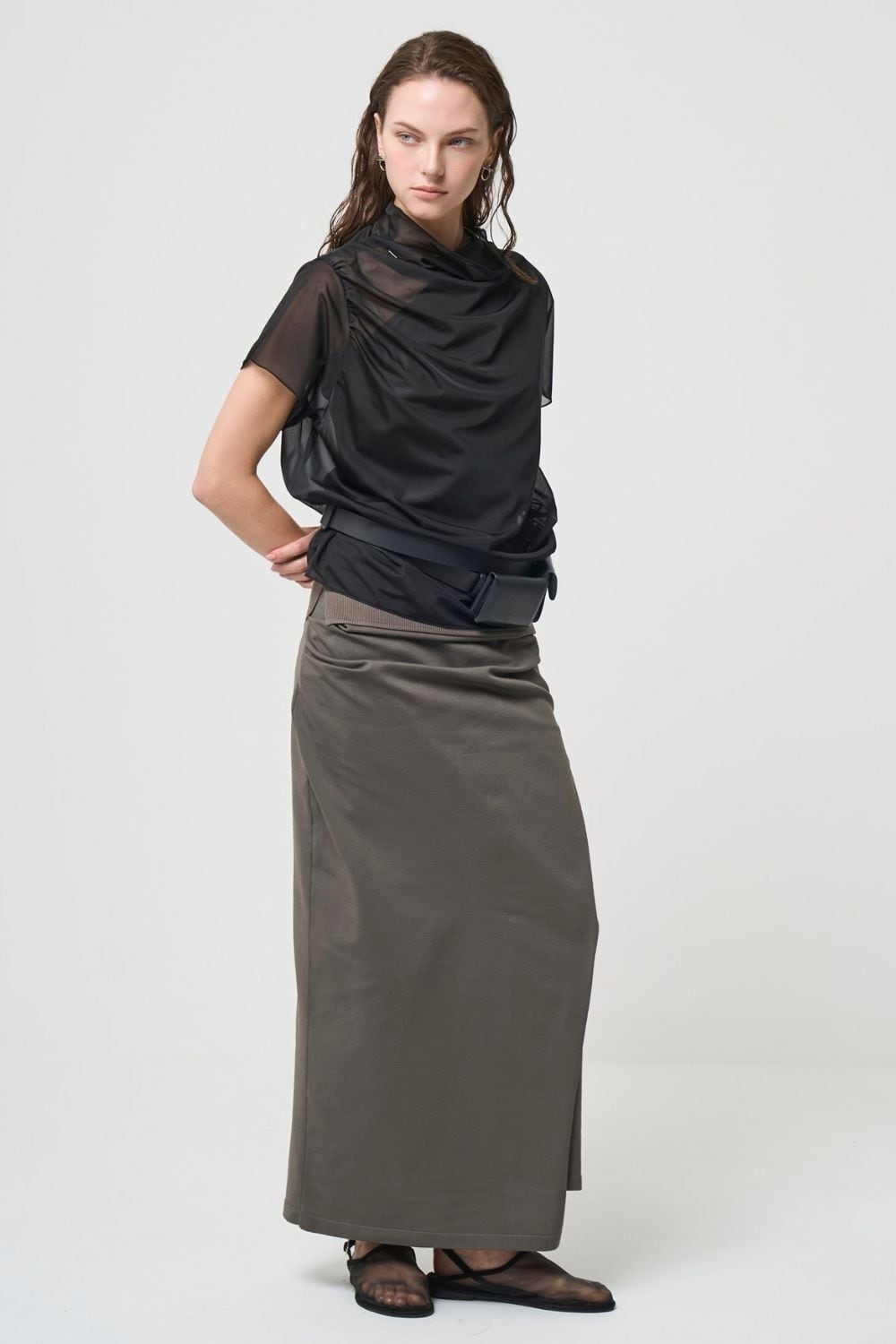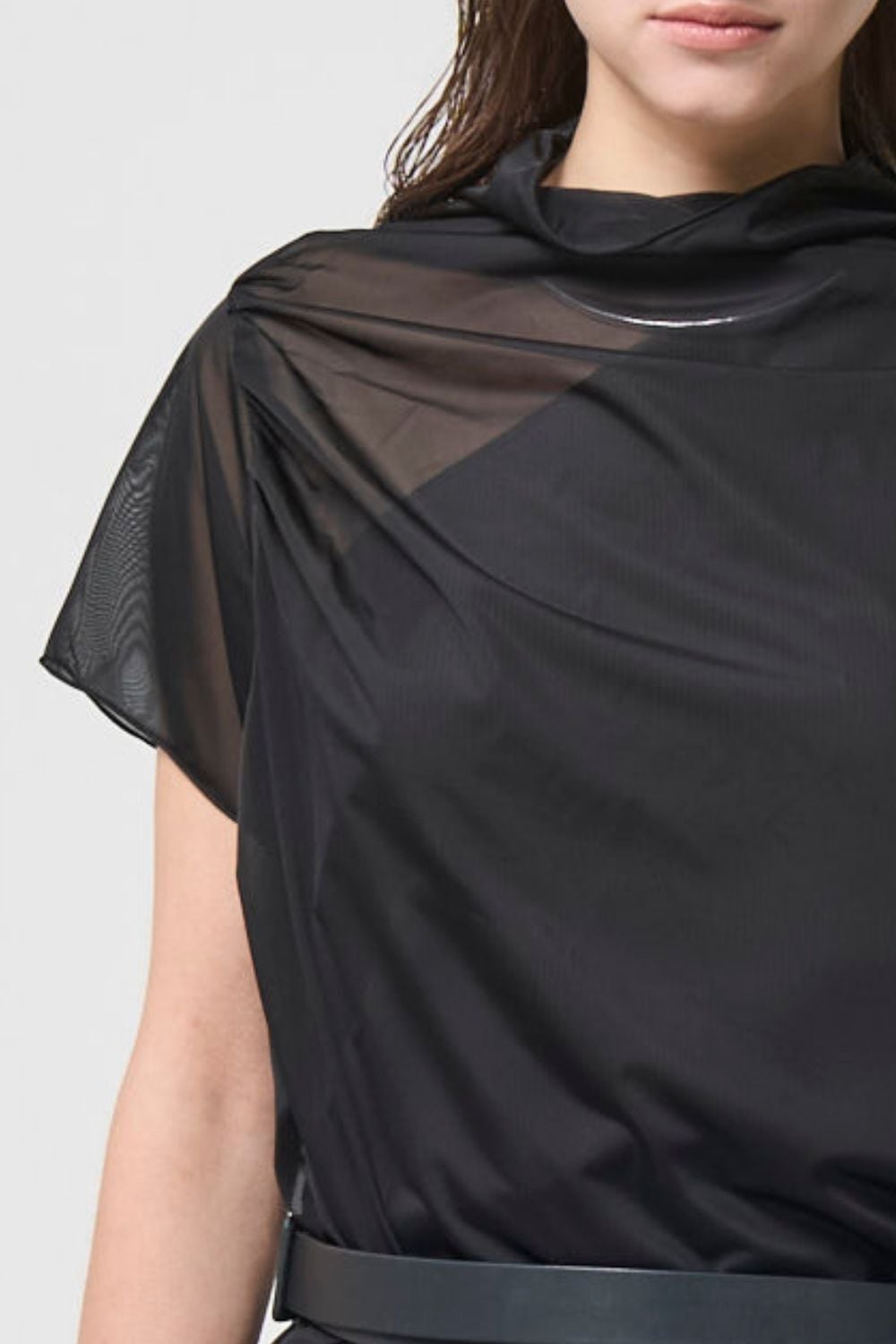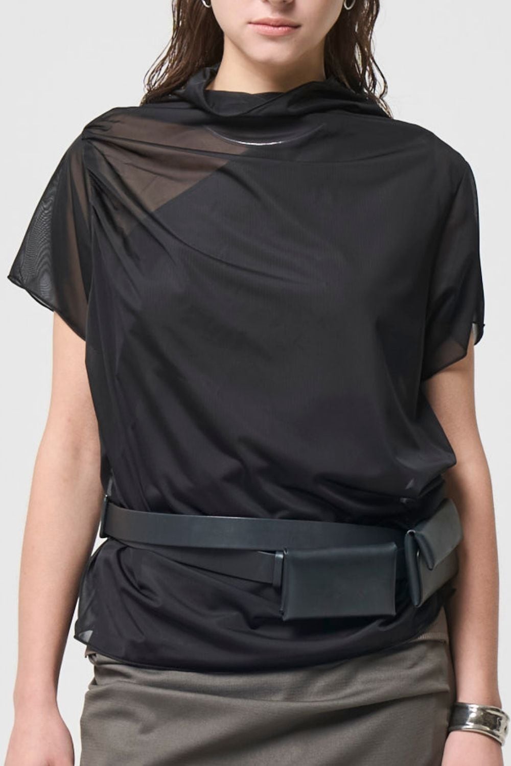 - 広めのボトルネックで首元にくしゅっとした動きを