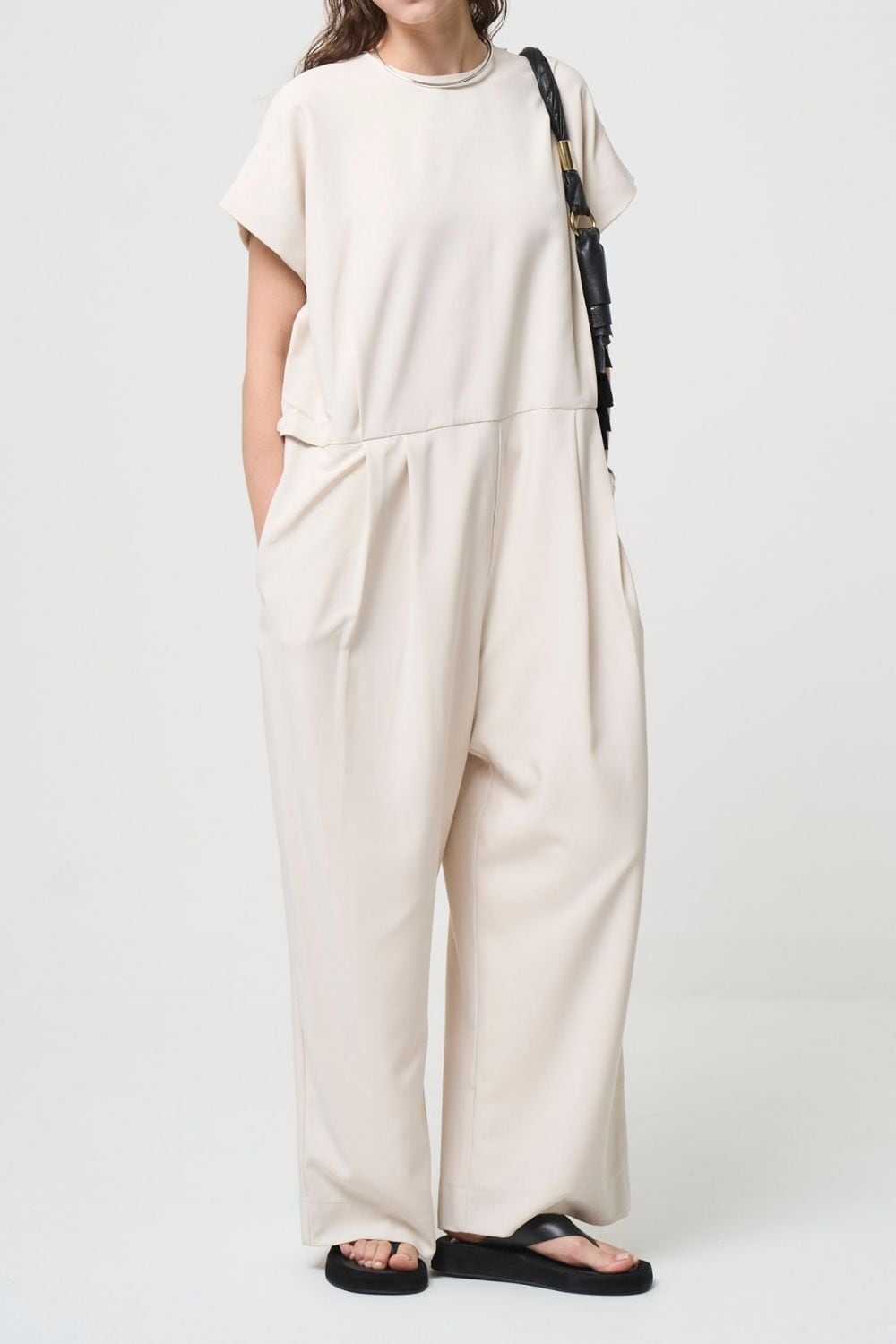 ワイドパンツのようなシルエットはタックと