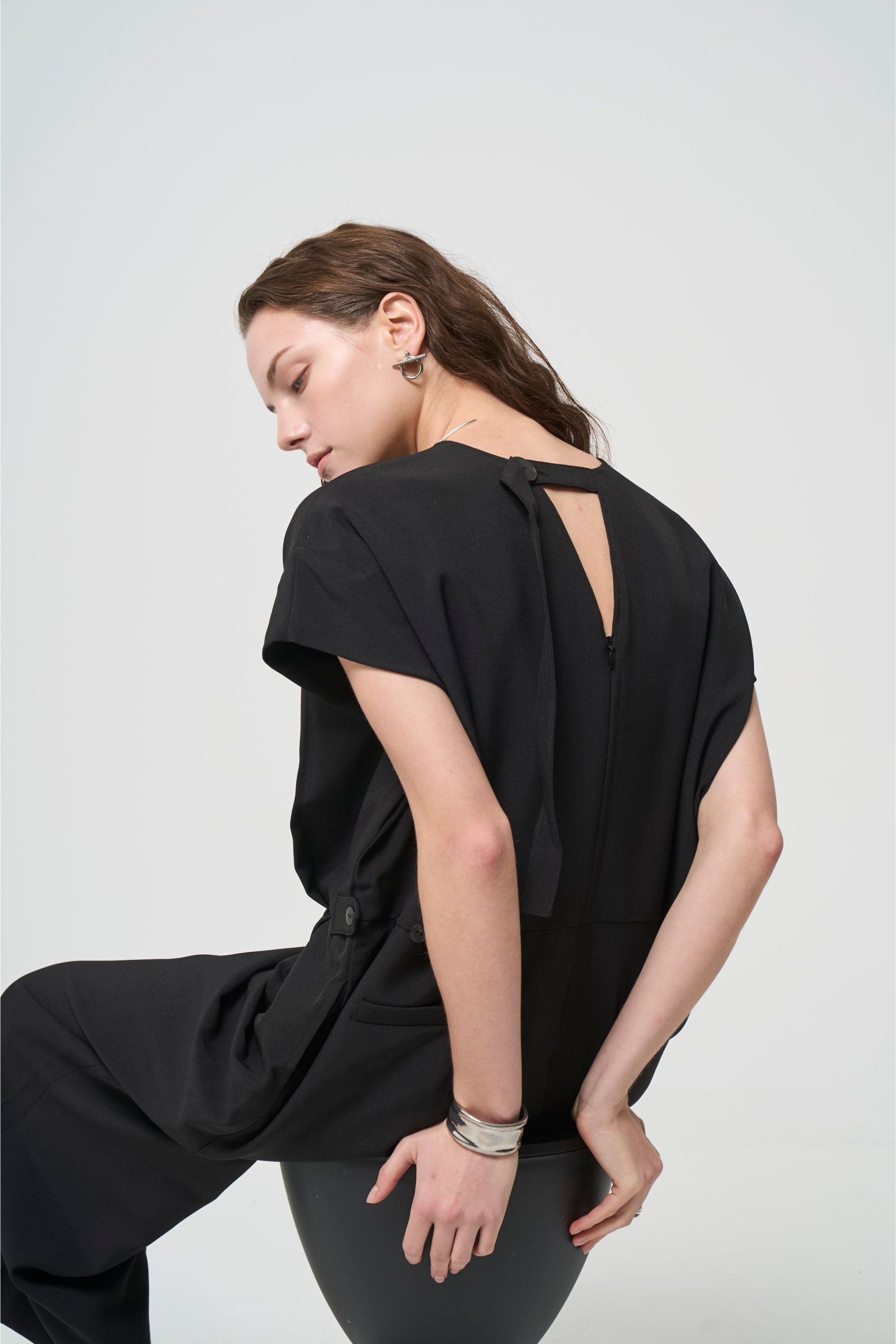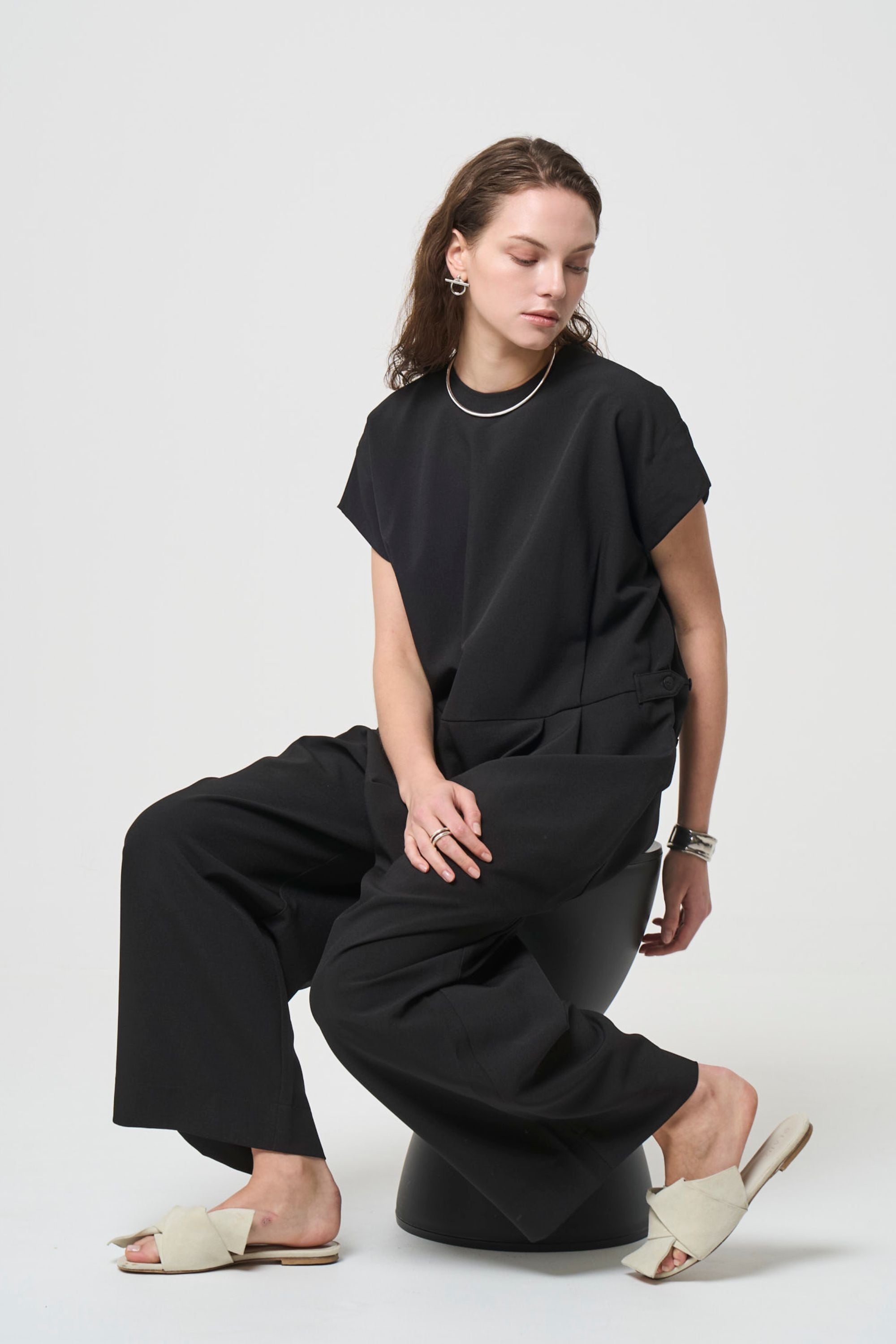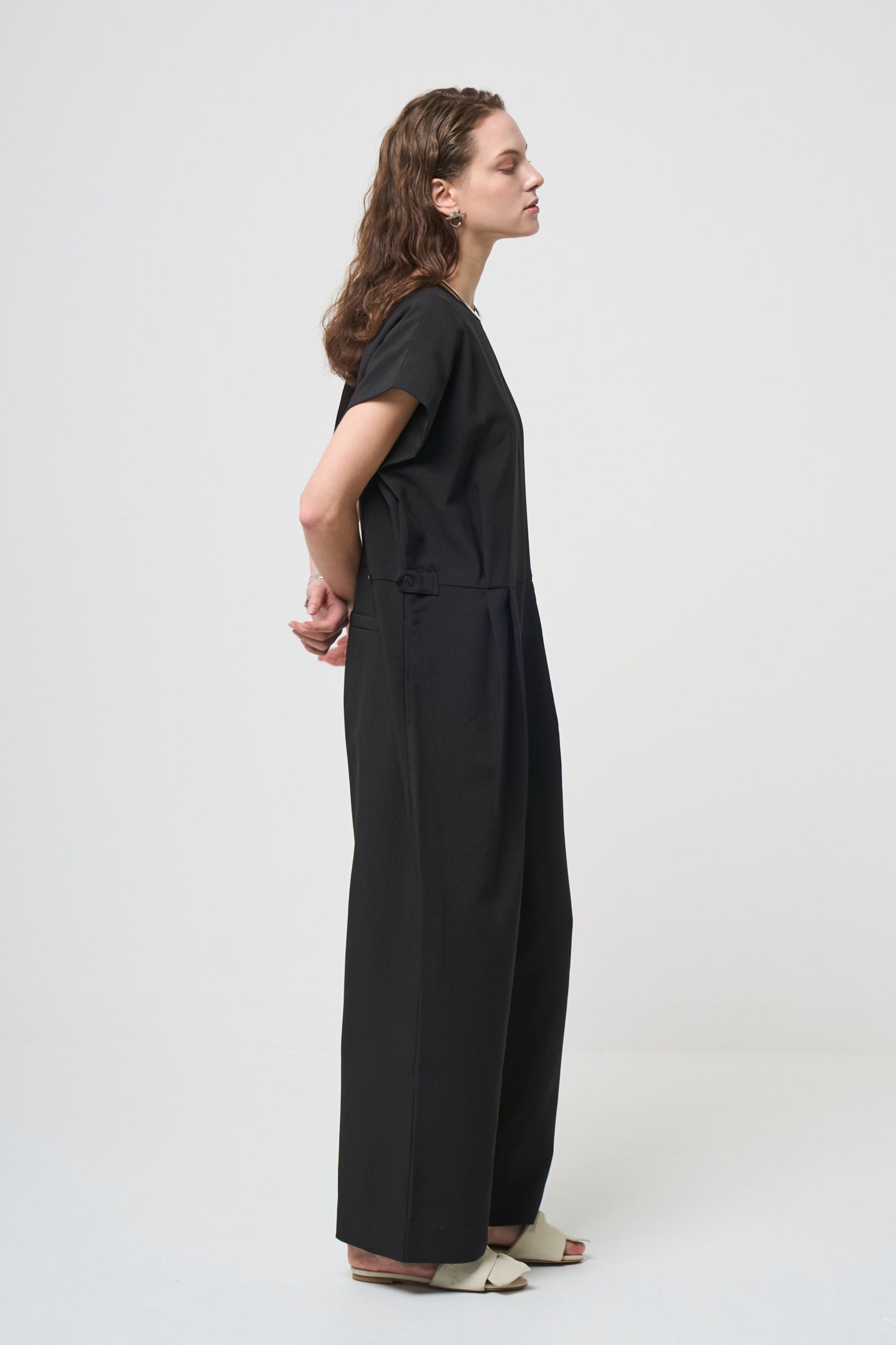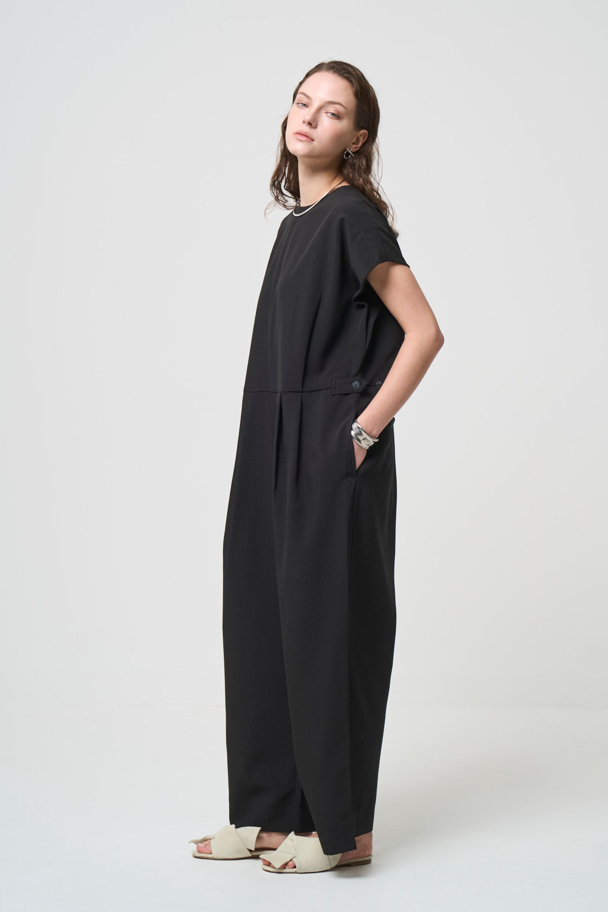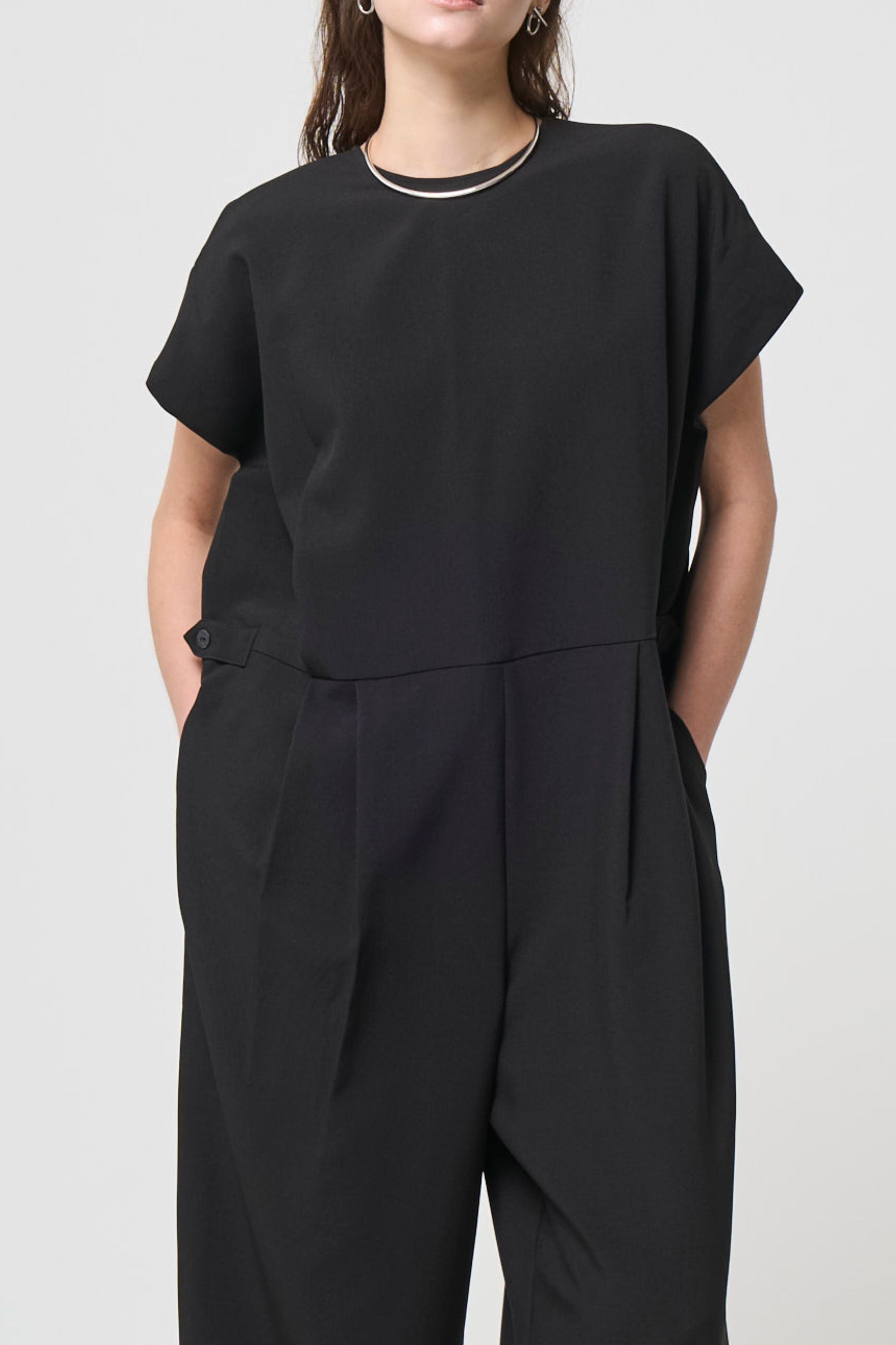タックと生地の動きでスタイルアップして見える一枚